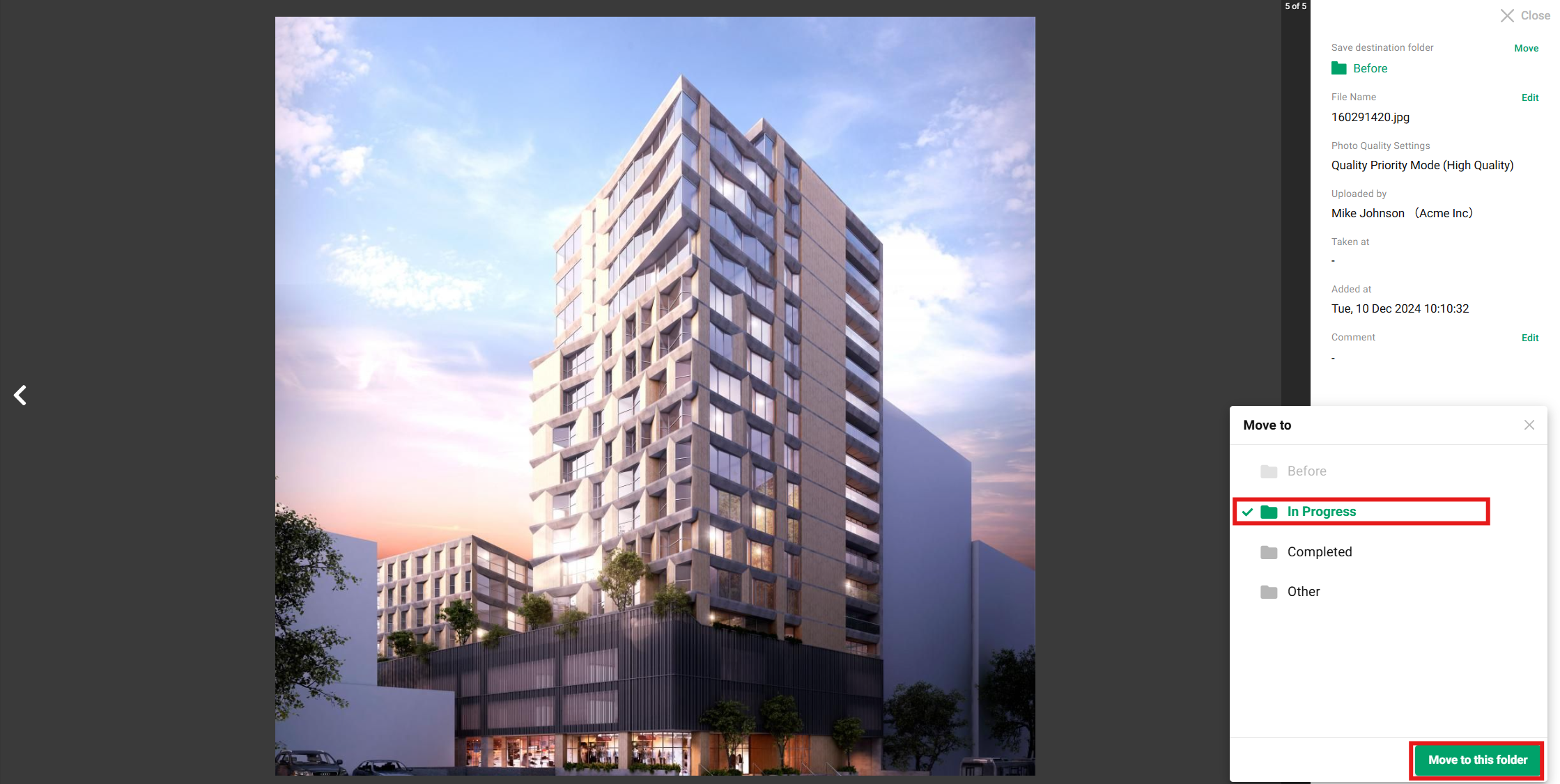 Ketuk "Pindahkan" di sudut kanan atas, pilih folder tujuan, lalu ketuk "Pindahkan ke folder ini."