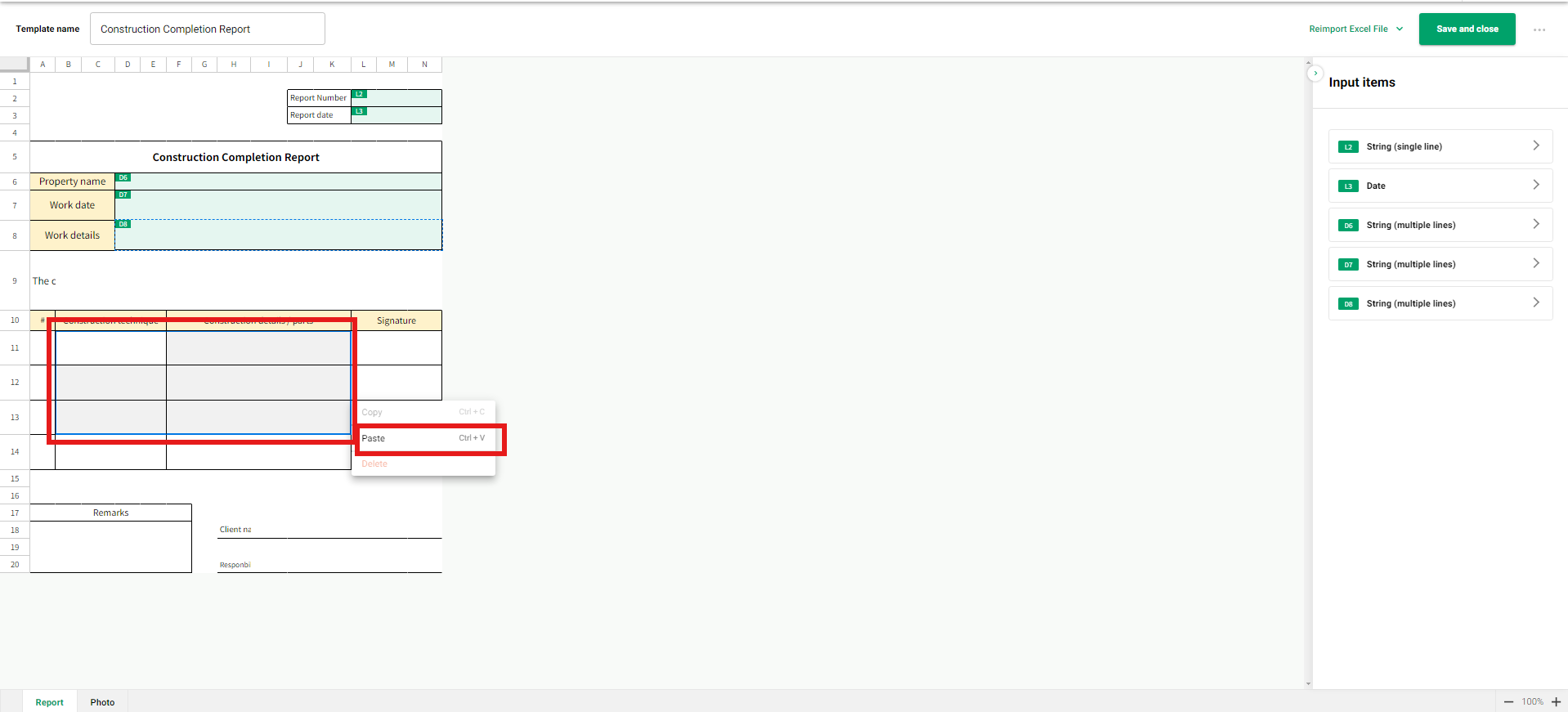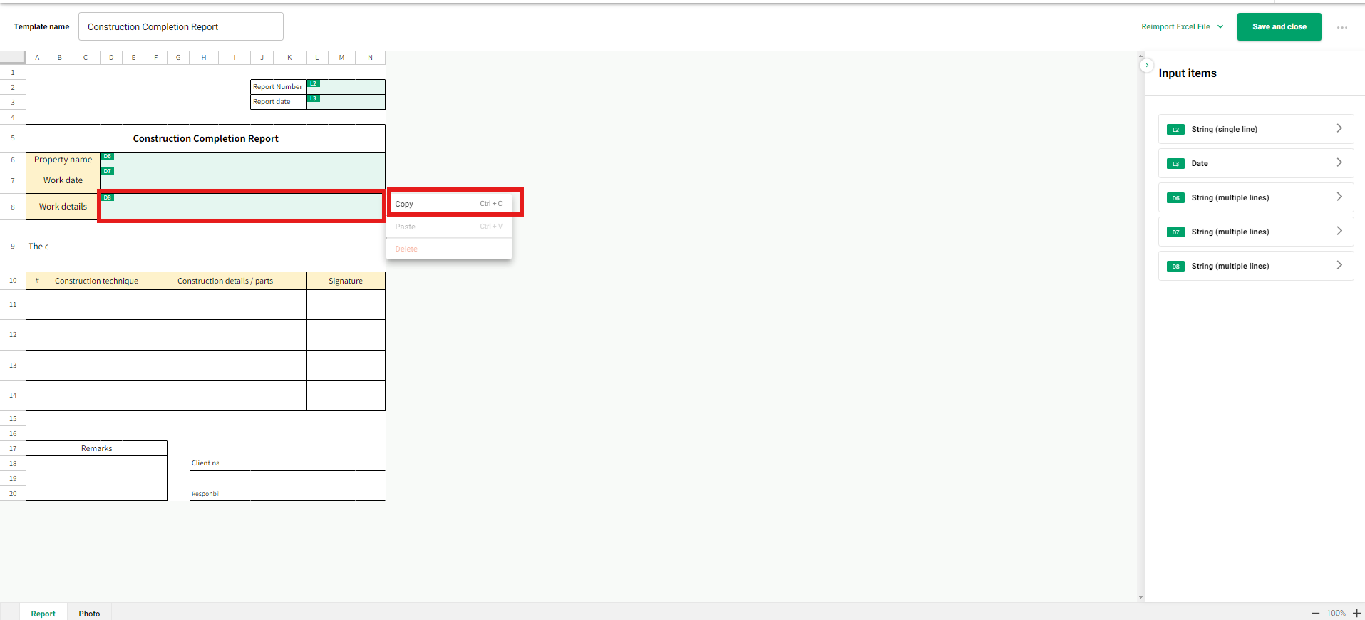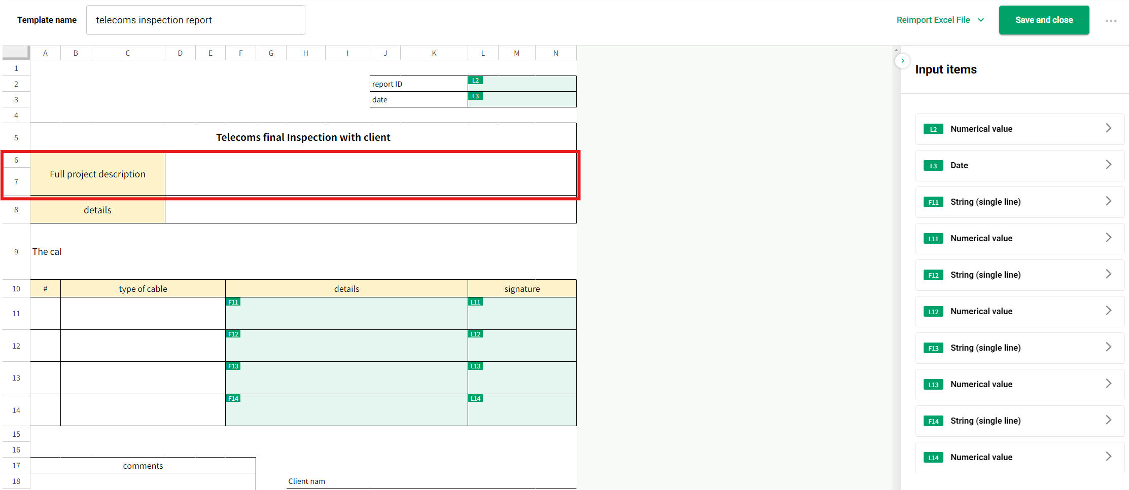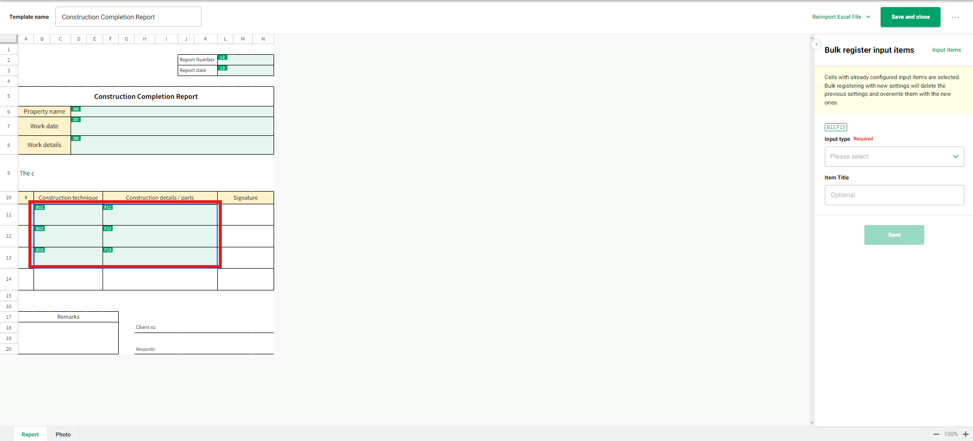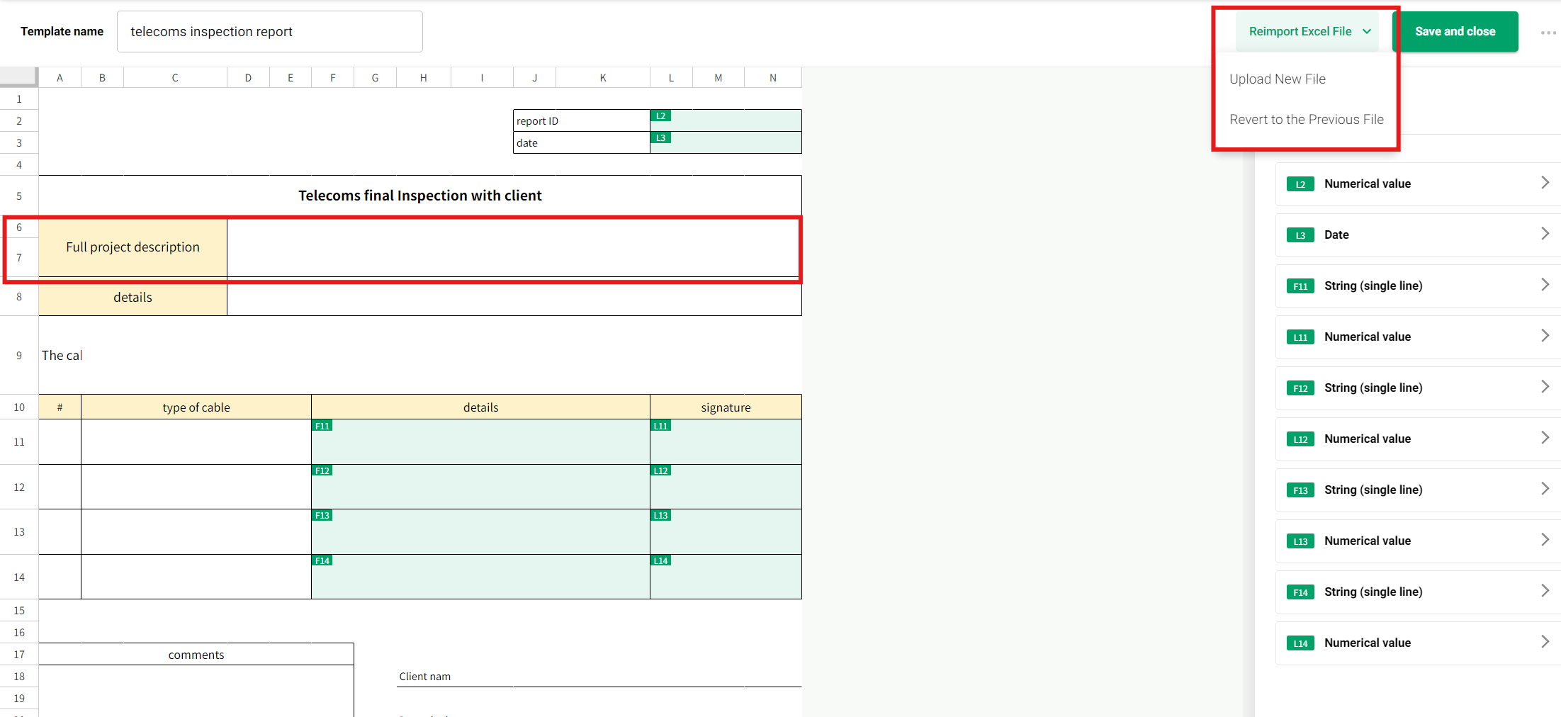 Jika Anda ingin melakukan pengeditan pada template laporan yang telah terdaftar atau pengaturan input, Anda dapat memuat ulang file Excel dan menerapkan hanya modifikasi yang dilakukan, sementara kolom input yang telah disetel sebelumnya tetap utuh.