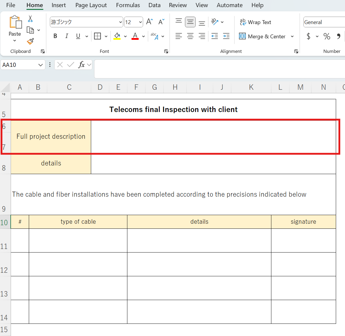 Setelah perubahan: Gabungkan sel dan sesuaikan untuk membuat kolom untuk memasukkan nama proyek.
