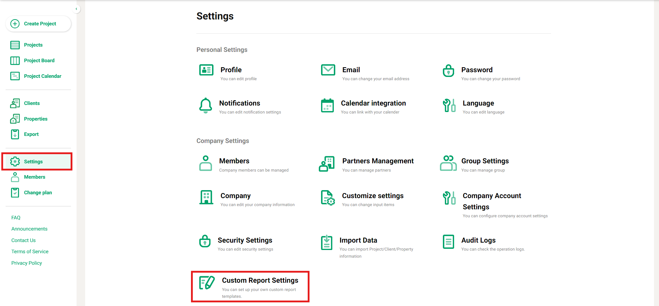 1. Pilih【Pengaturan Laporan Kustom】dari【Pengaturan】.