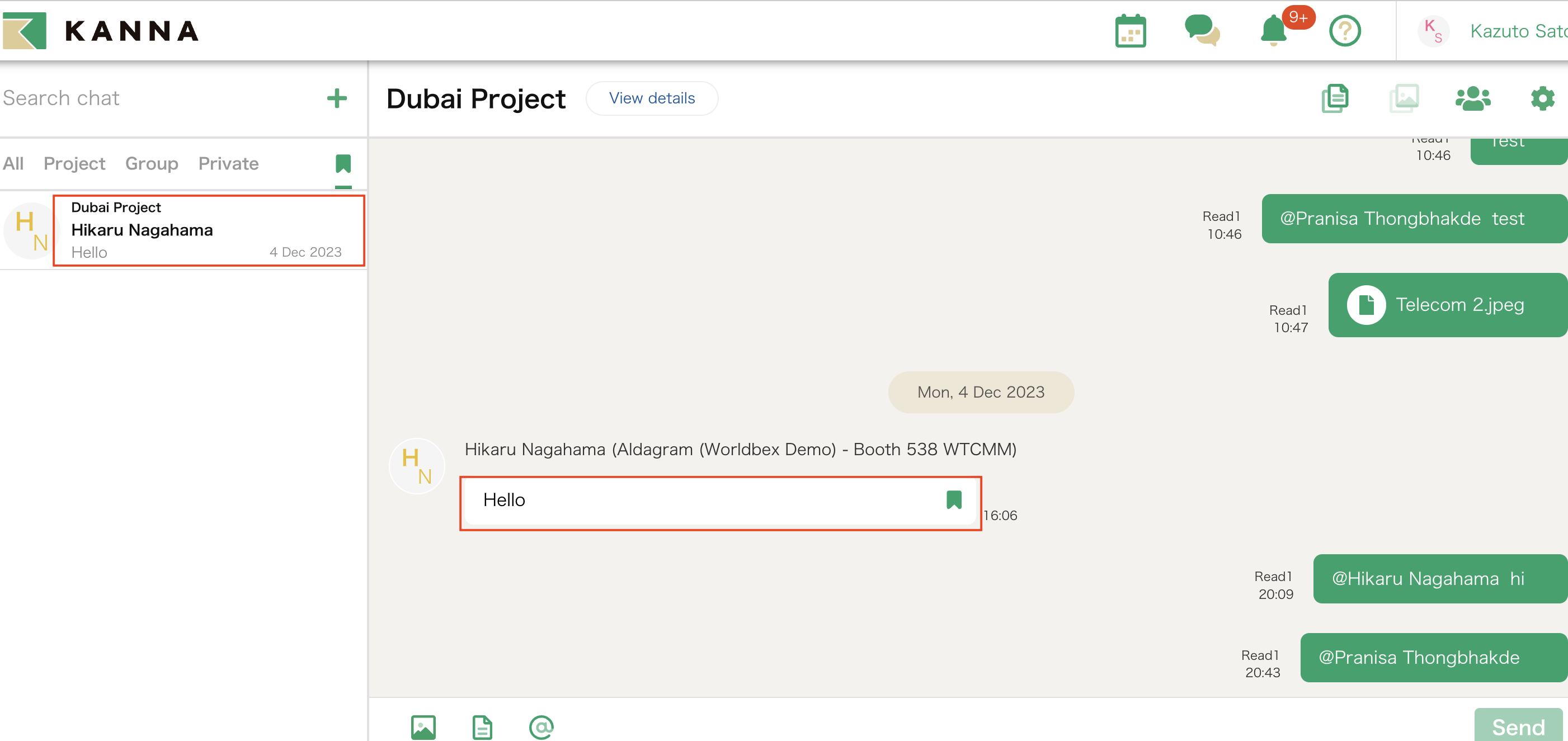 Anda dapat menandai pesan, foto, dan dokumen di chat KANNA. Dengan fungsi ini, Anda dapat dengan mudah memeriksa pesan yang ingin Anda balas nanti atau chat penting yang perlu diperhatikan.