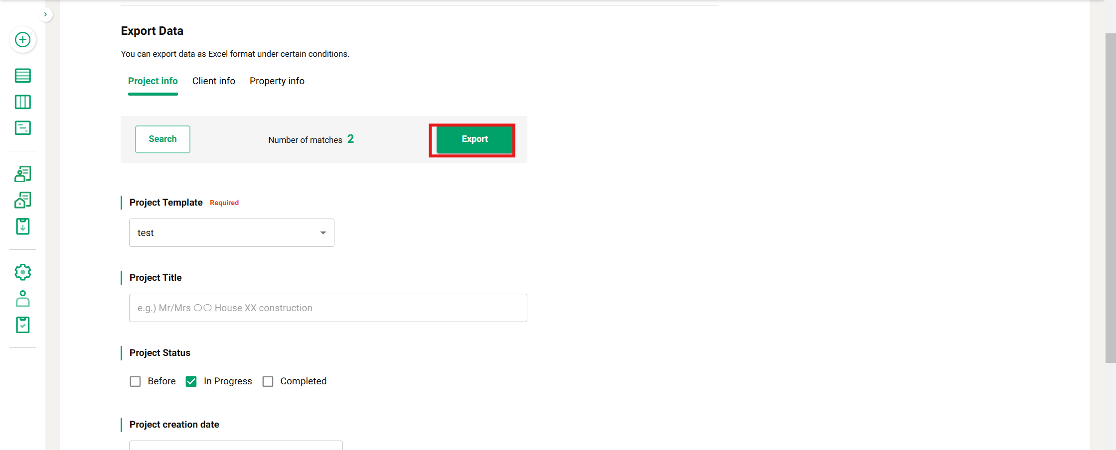 1. Cari data proyek yang ingin Anda tetapkan sebagai proyek induk dan klik Ekspor.