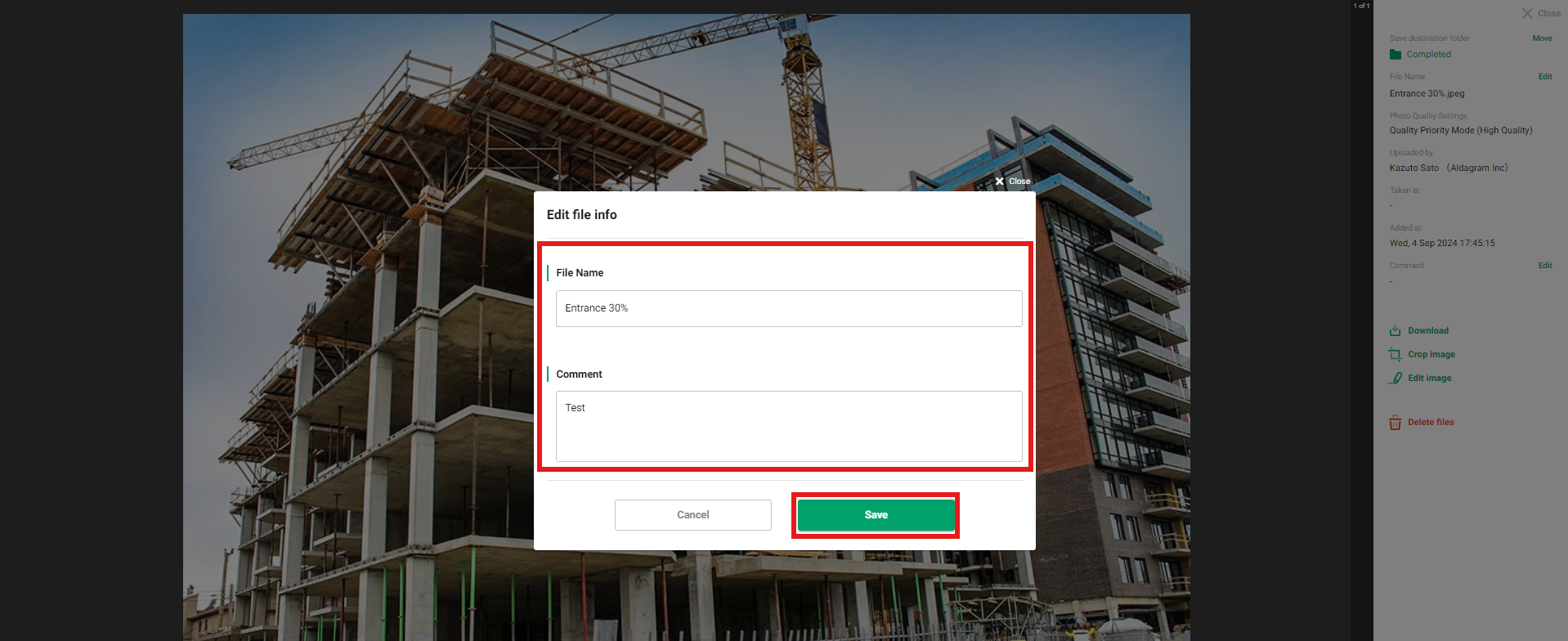 Setelah komentar ditambahkan, pilih folder tujuan seperti halnya foto biasa, lalu ketuk [Tambahkan] di pojok kanan atas untuk menyelesaikan penyimpanan.