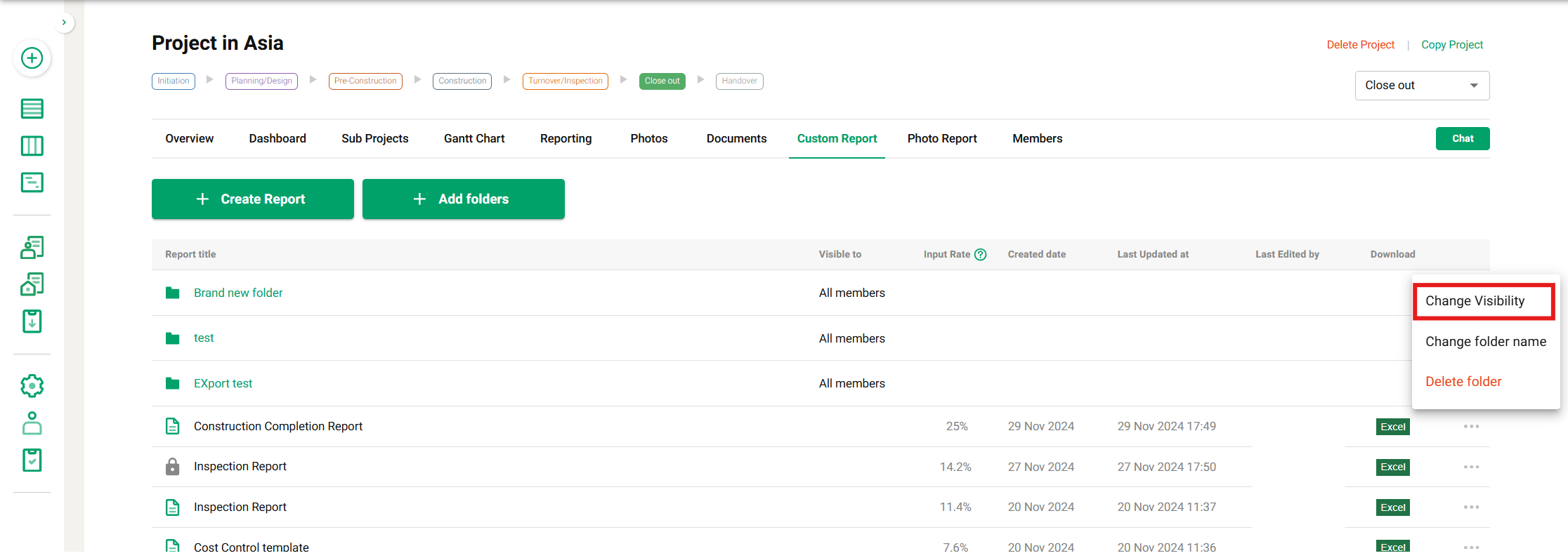 Anda dapat membuat folder untuk setiap proyek dan mengatur laporan yang dibuat ke dalam folder-folder ini. Selain itu, Anda dapat mengonfigurasi izin tampilan untuk setiap perusahaan.