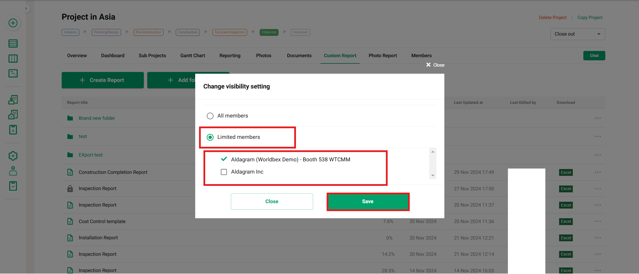 3. Pilih perusahaan yang ingin Anda bagikan di bawah [Anggota terbatas] dan klik [Simpan].