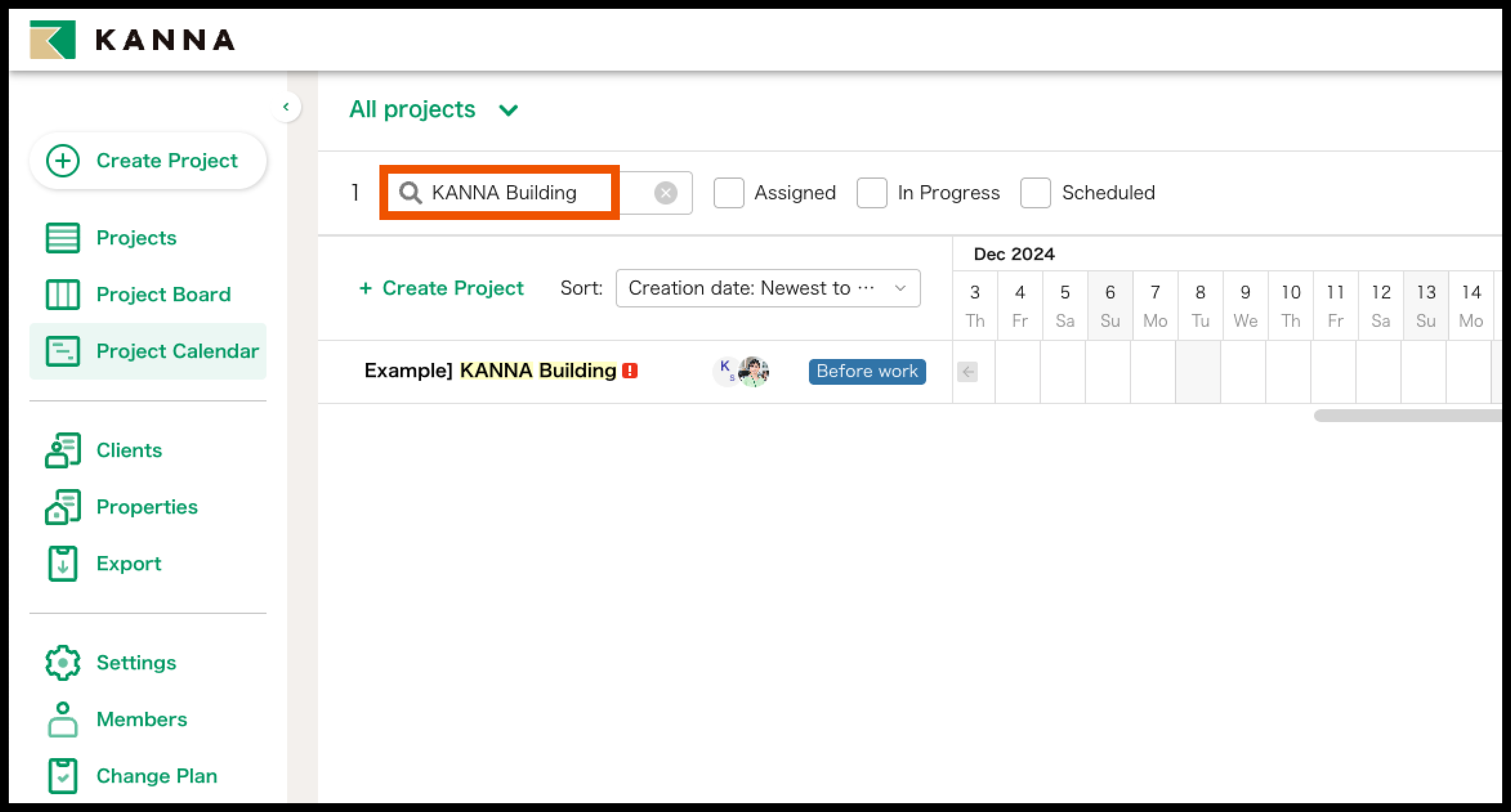 【KANNA Project】Sekarang Anda dapat memfilter proyek menggunakan kalender proyek.