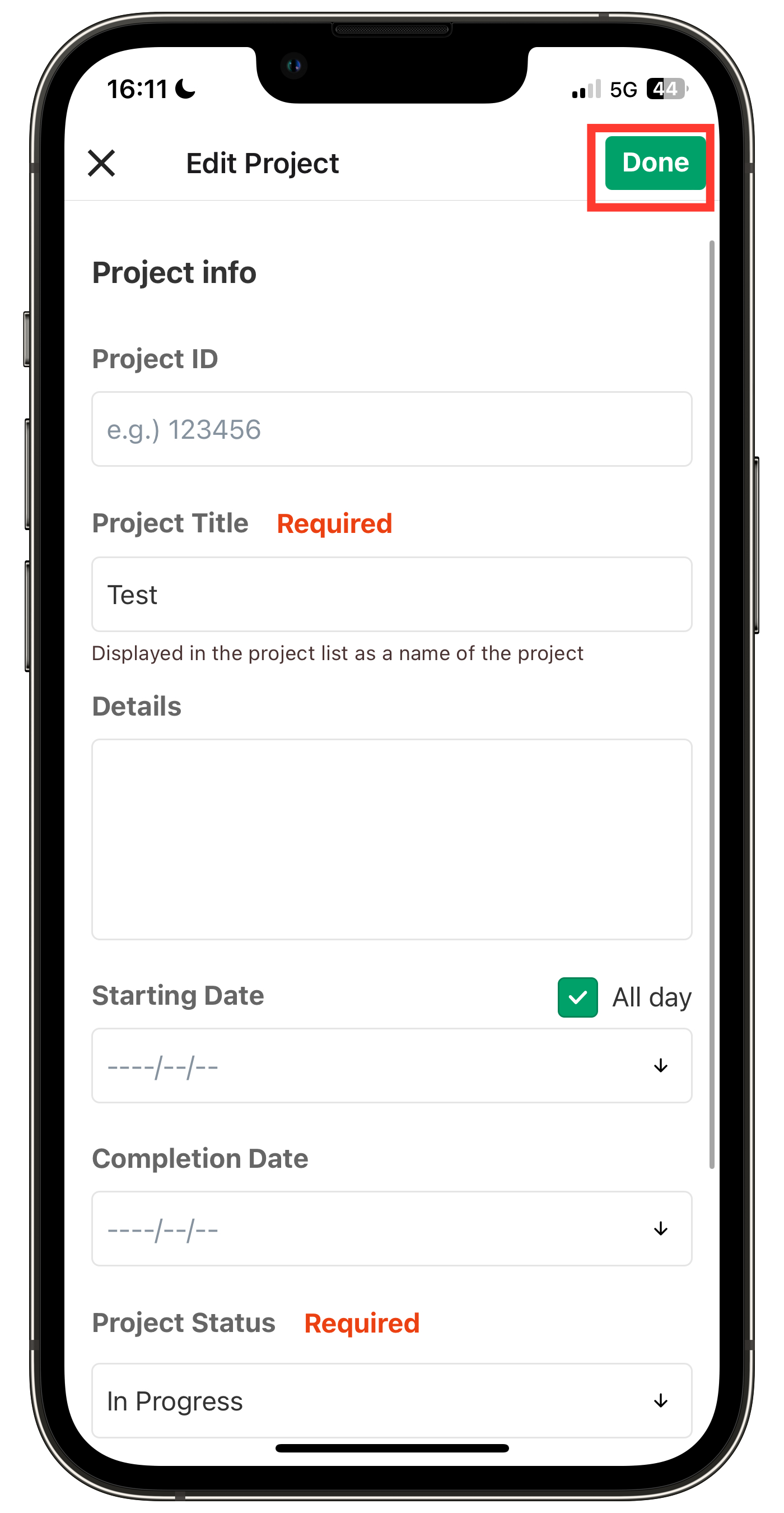 Ketuk proyek yang ingin Anda edit dari menu "Proyek".