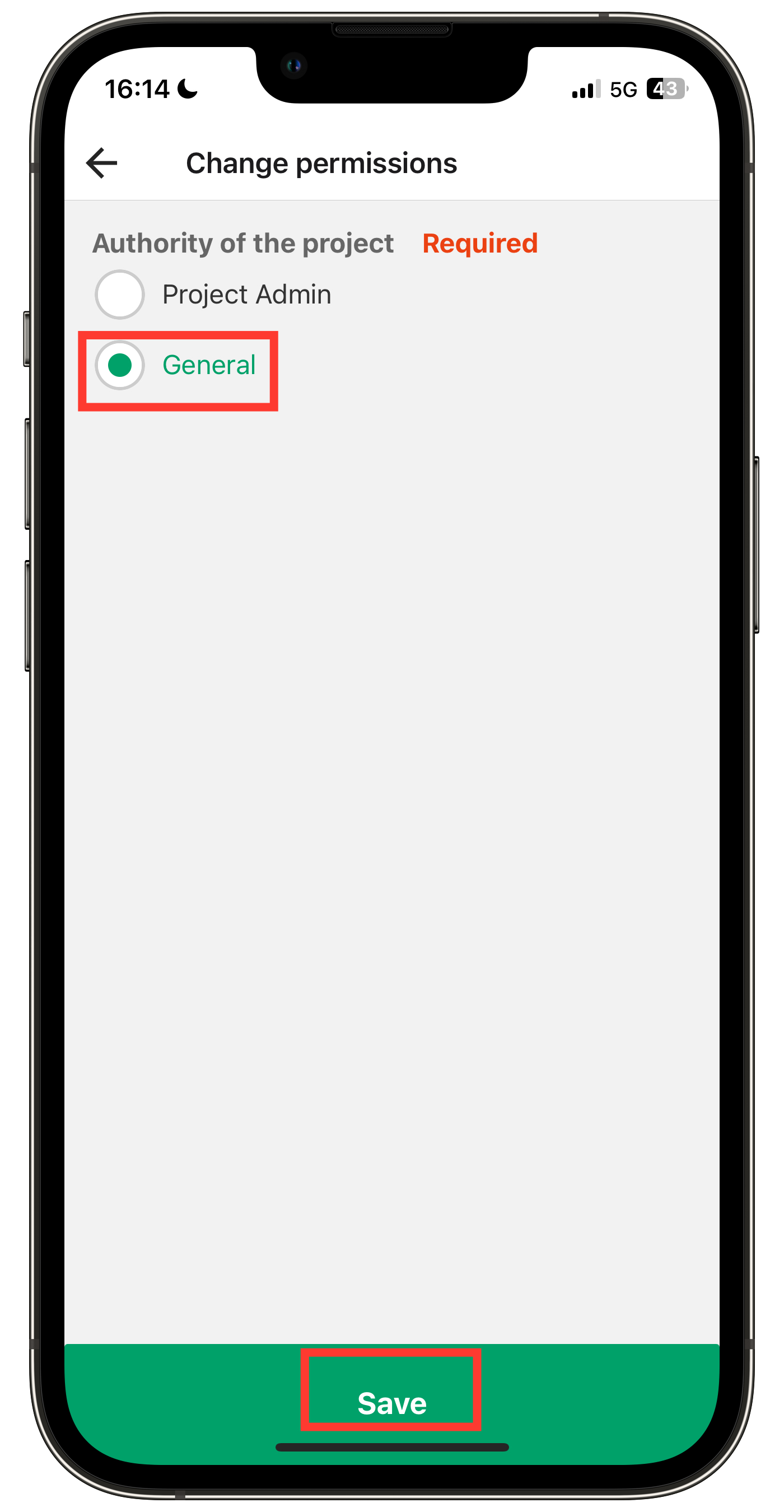 Catatan: Untuk perubahan izin, pilih izin yang diinginkan dan ketuk "Simpan".