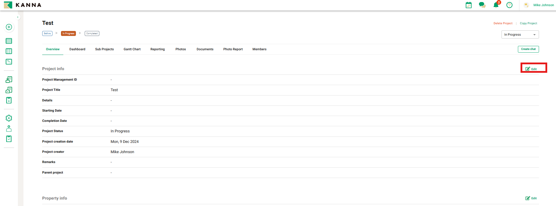 Catatan: Hanya admin proyek yang dapat mengedit bagian ringkasan proyek.