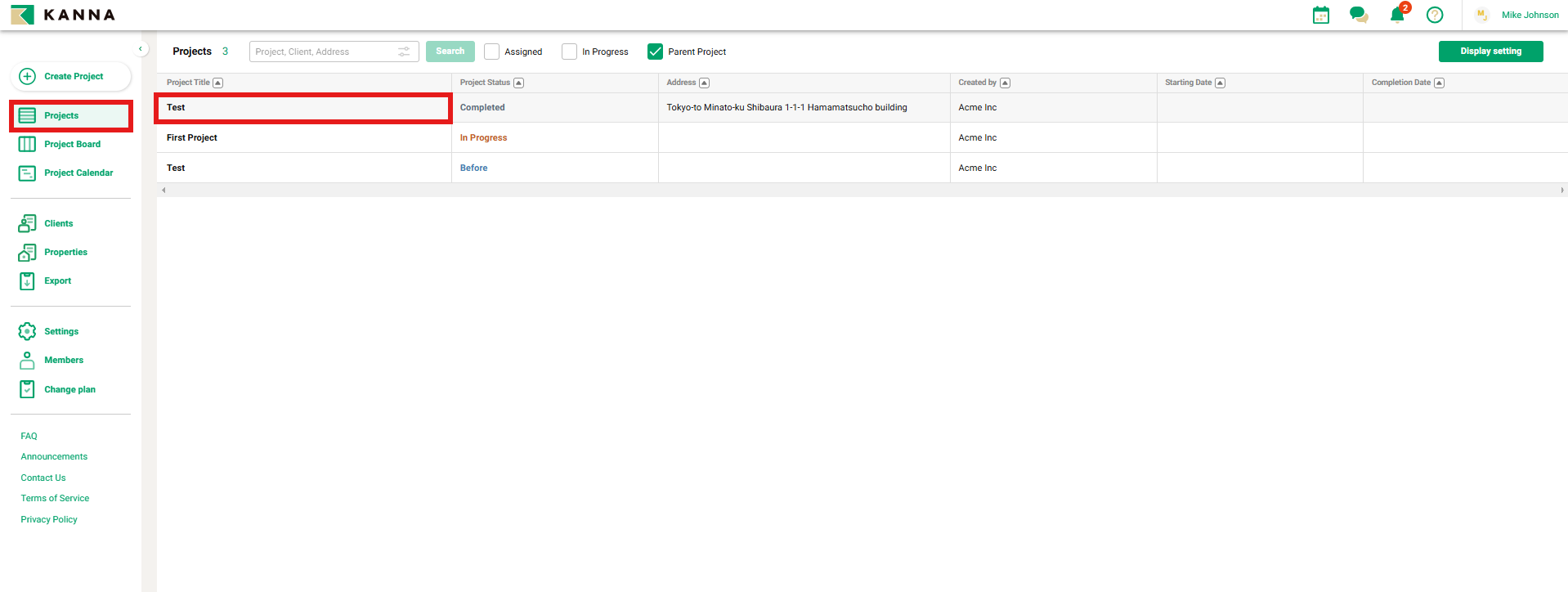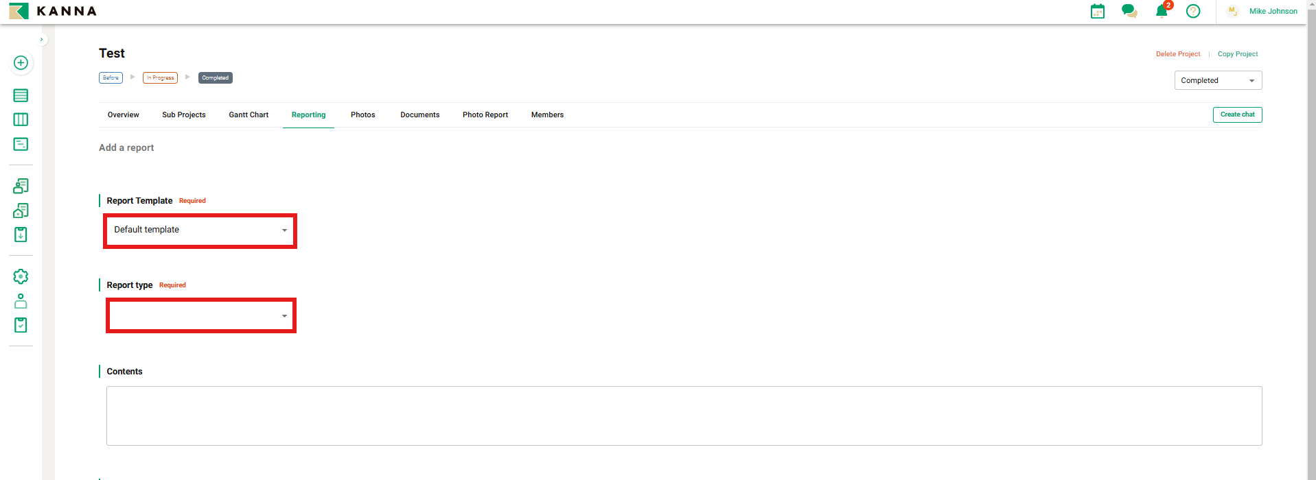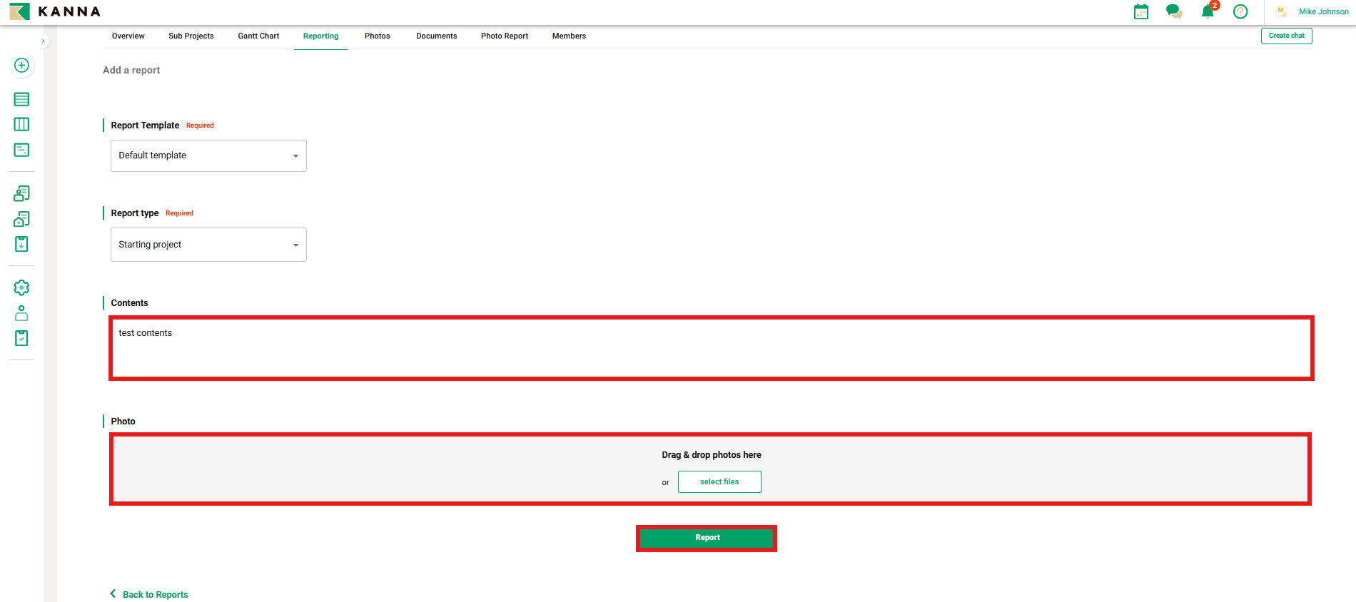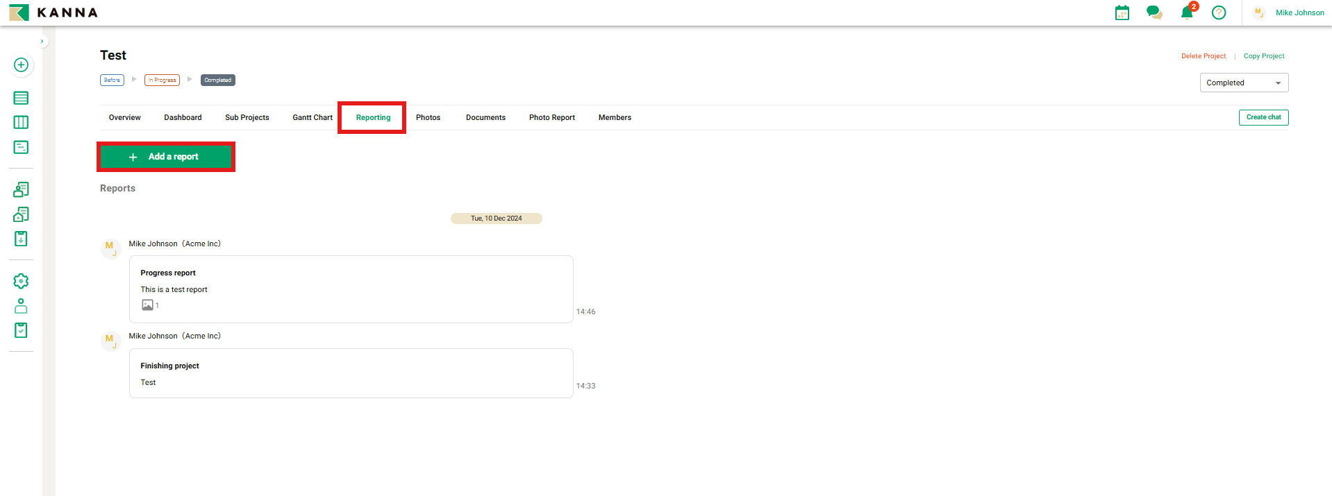 Di KANNA, Anda dapat menambahkan laporan untuk setiap proyek.