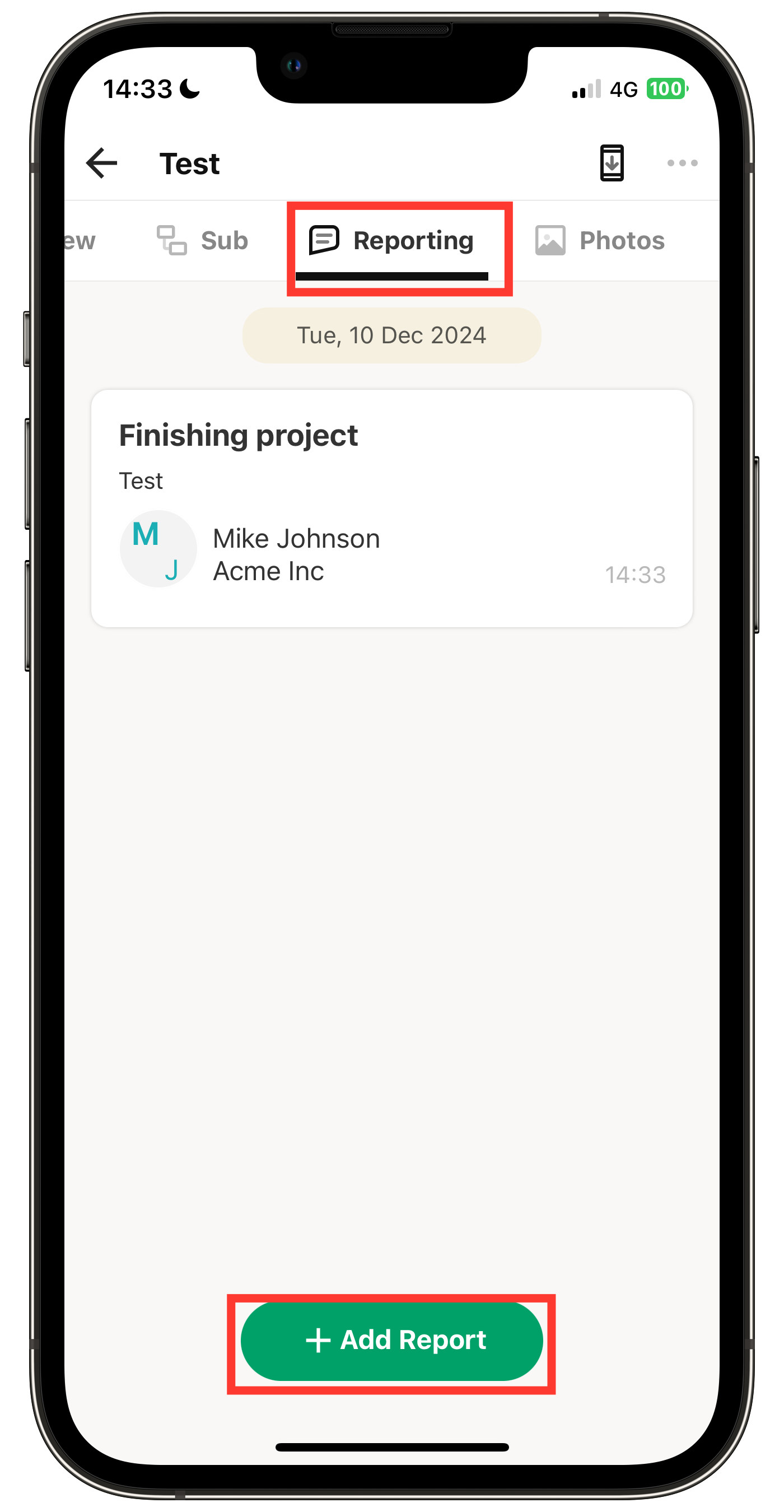 2. Ketuk "+Tambah Laporan" dari bagian "Pelaporan" di bagian atas.
