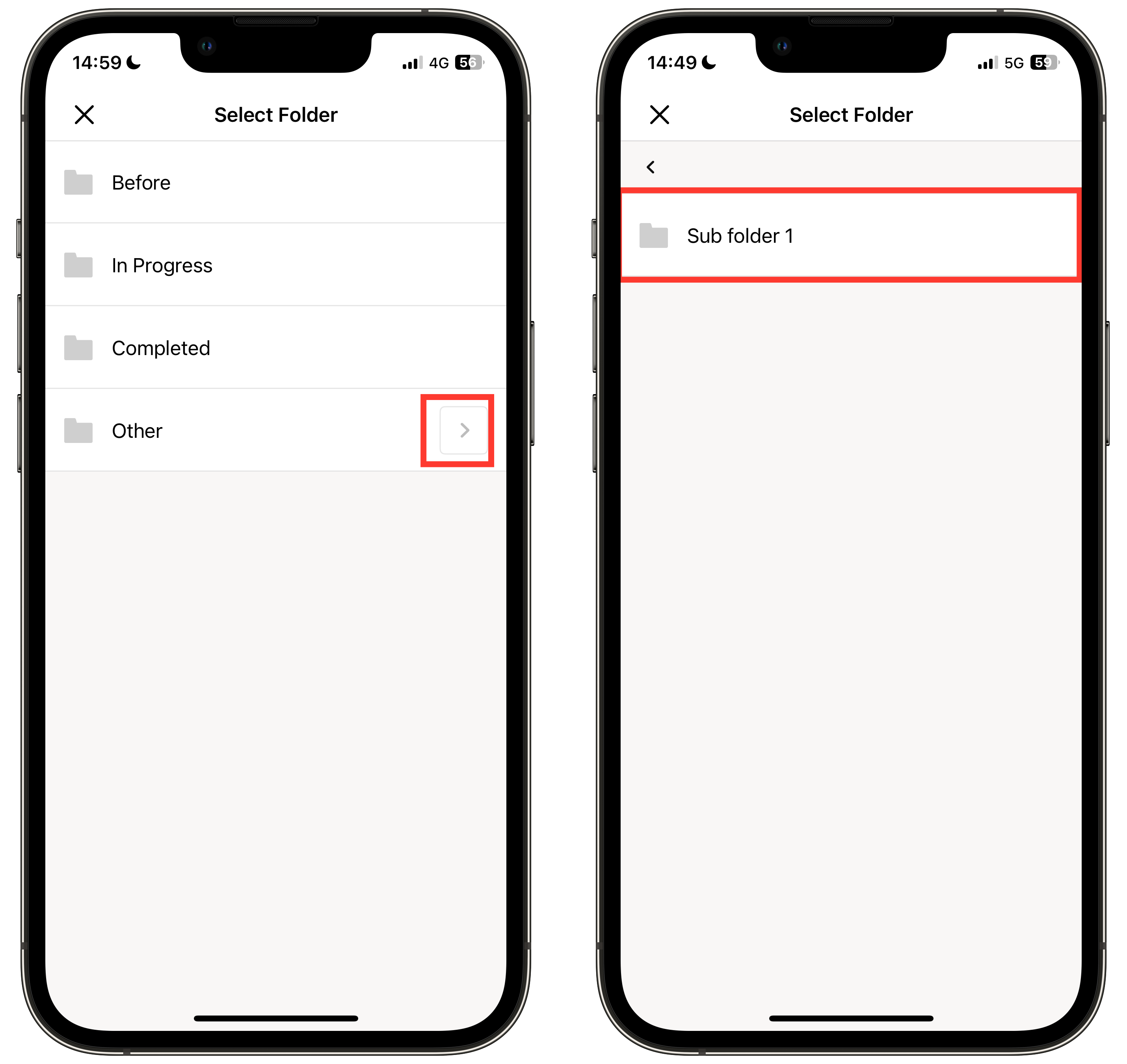 Anda juga dapat memilih subfolder. (Lihat gambar kedua dan ketiga.)