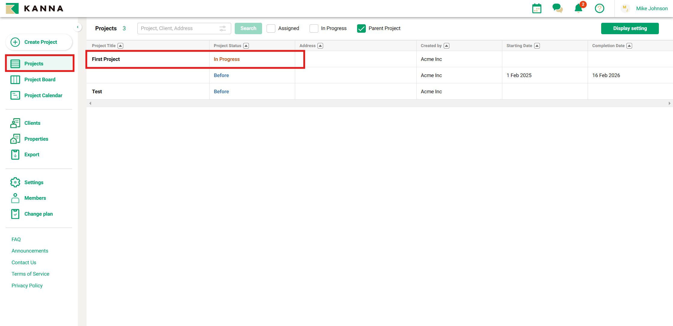 1. Pilih proyek yang ingin Anda tambahkan fotonya dari layar "Proyek".
