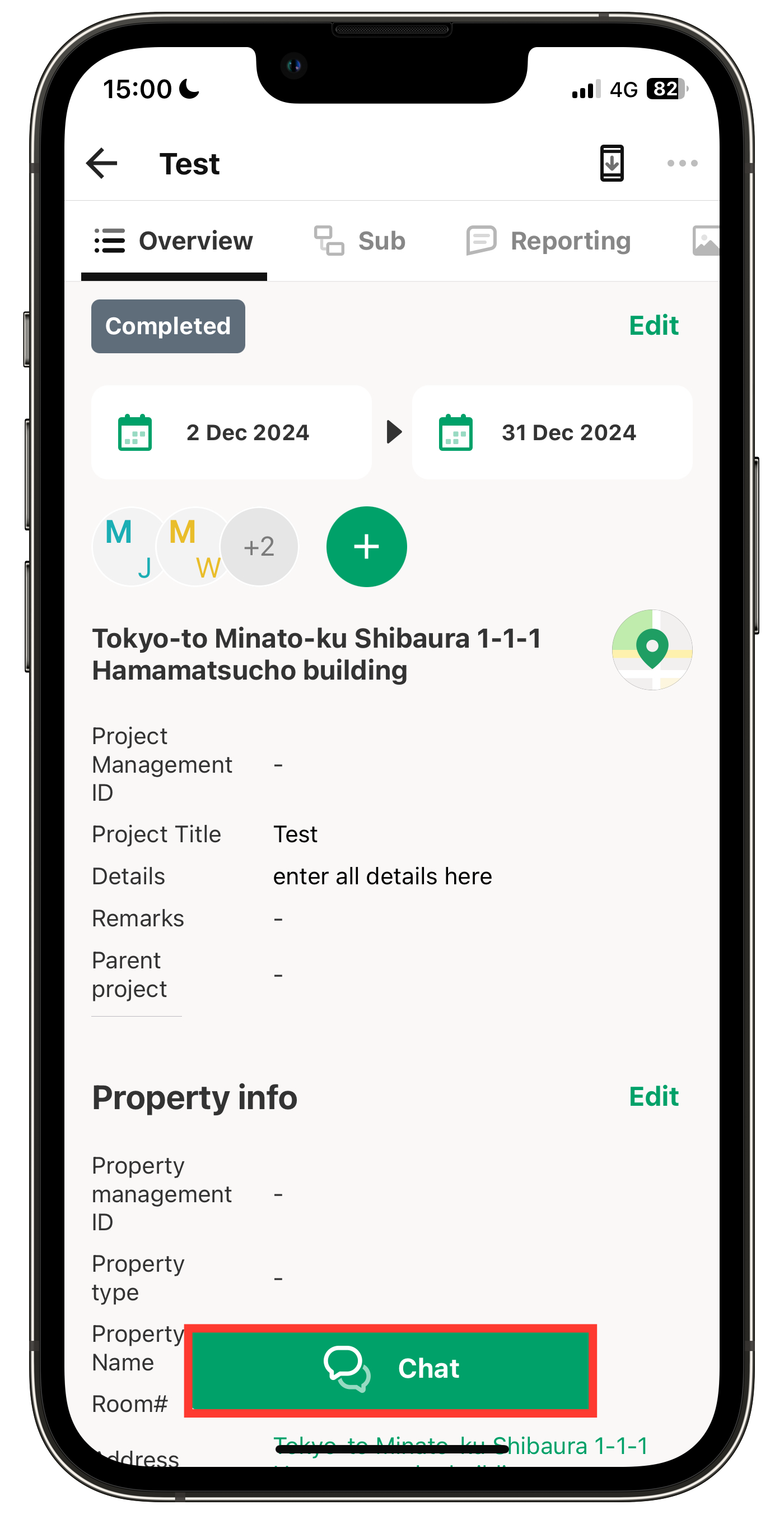 Dengan menekan "Buat Chat", grup obrolan untuk proyek yang bersangkutan akan dibuat.