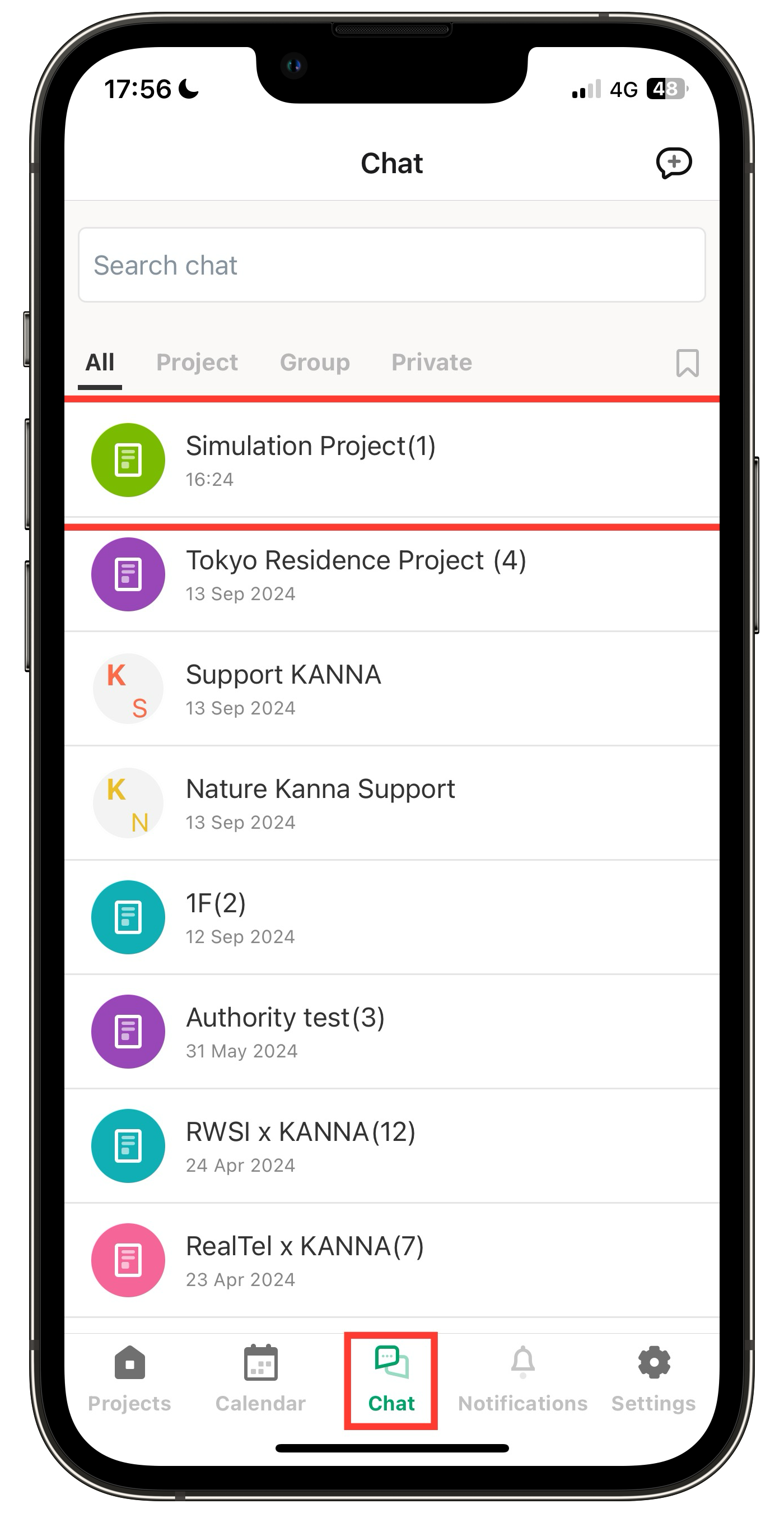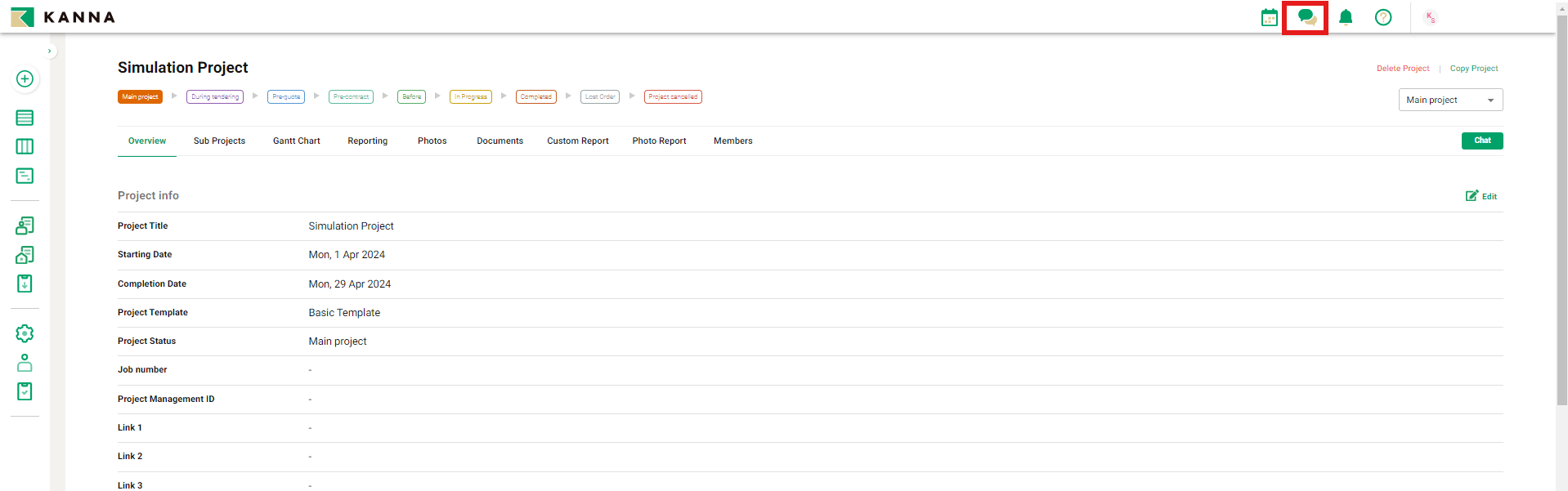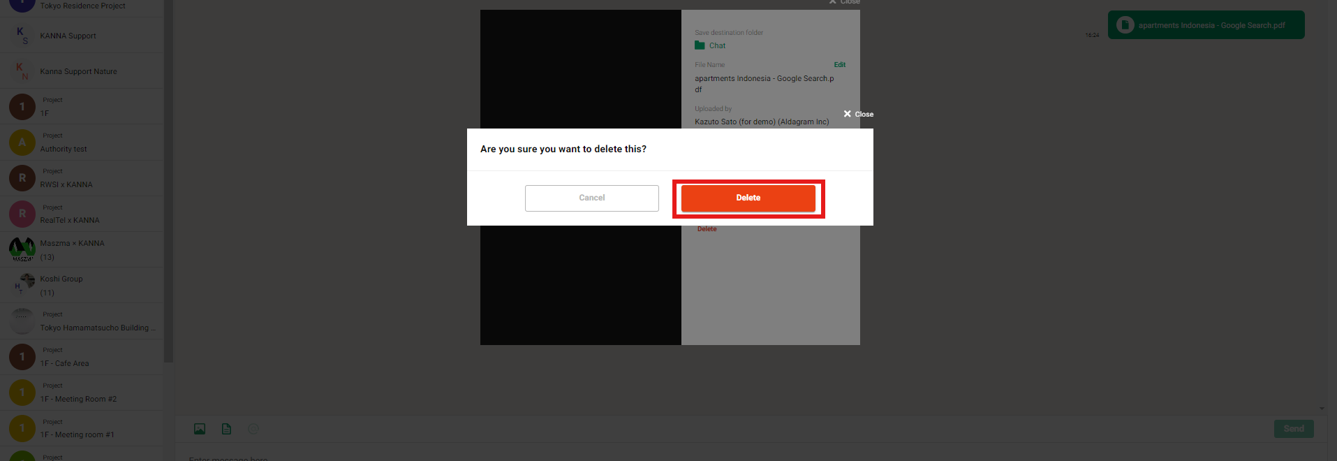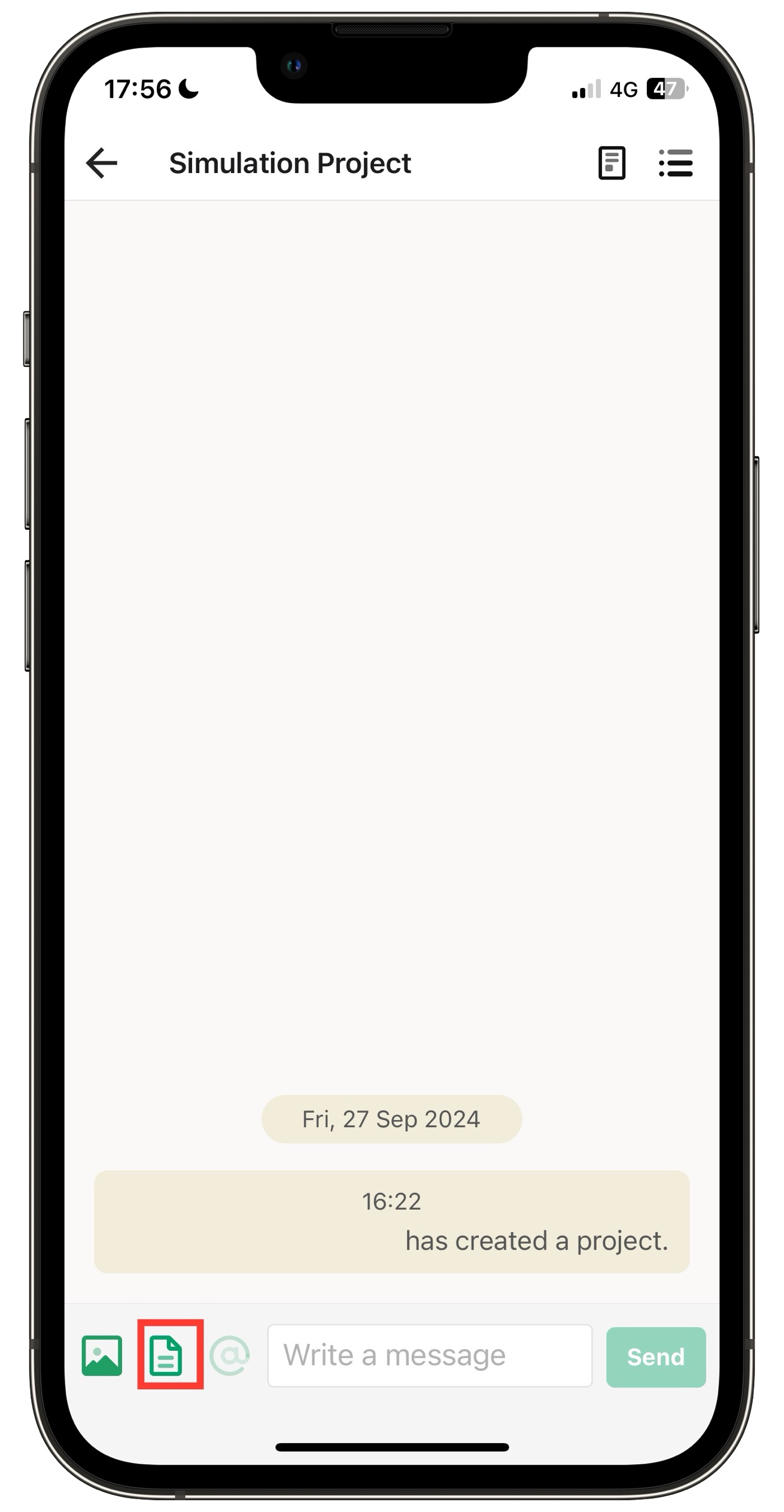 Selain itu, dokumen yang dikirim dalam obrolan setiap proyek secara otomatis disimpan di folder yang sesuai dalam proyek tersebut.