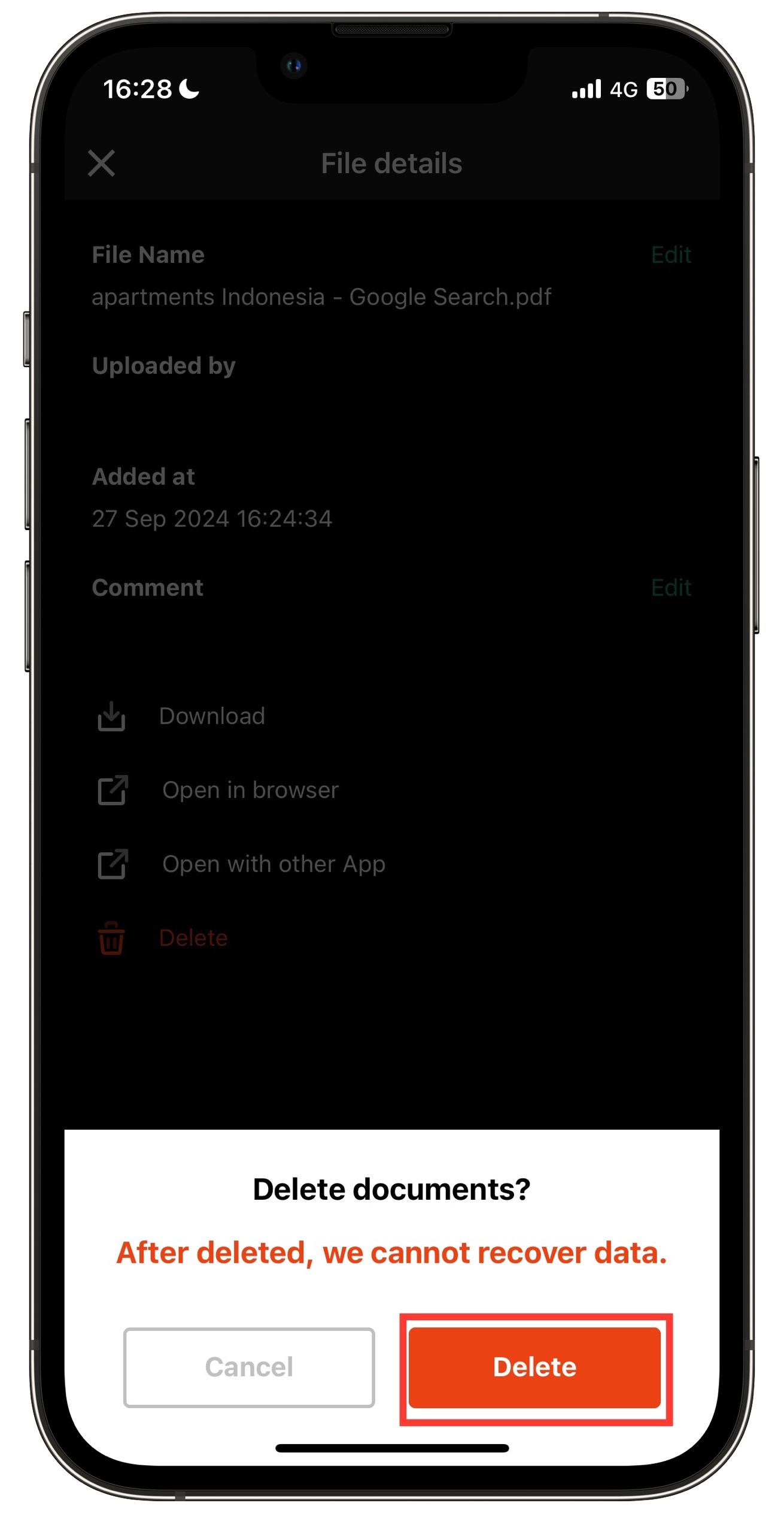 Anda dapat menghapus dokumen yang dikirim di obrolan.