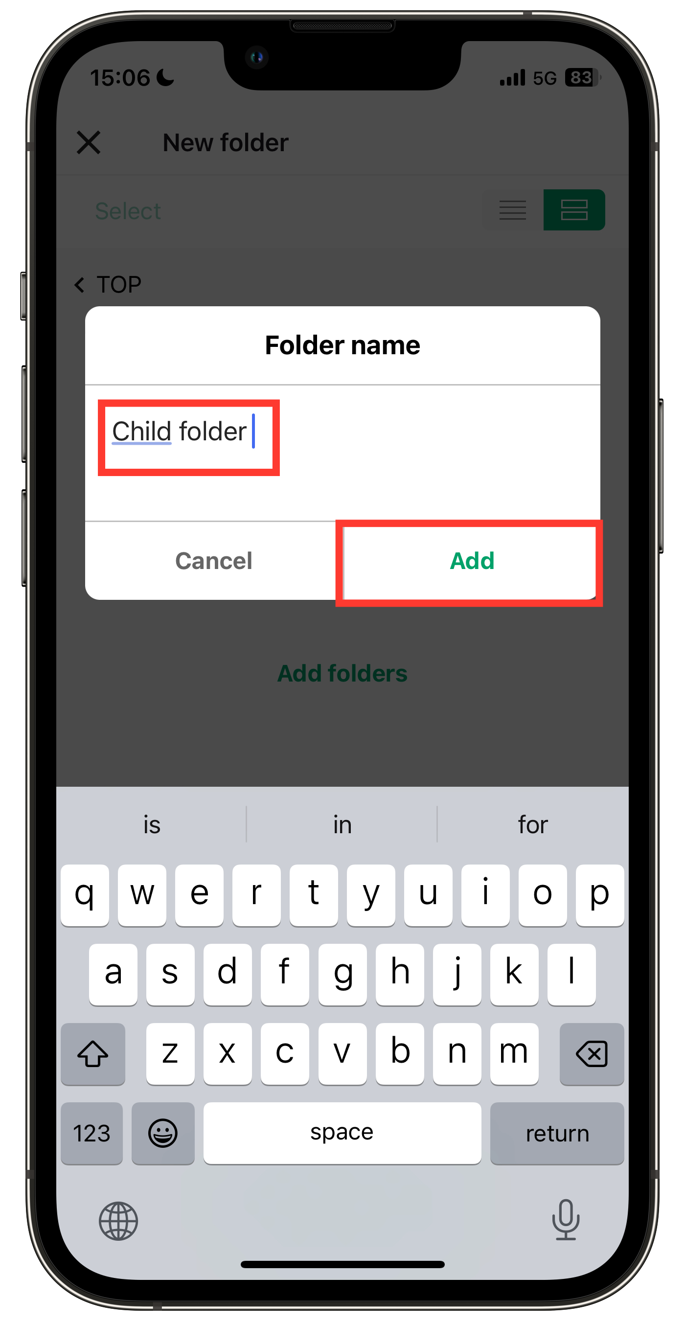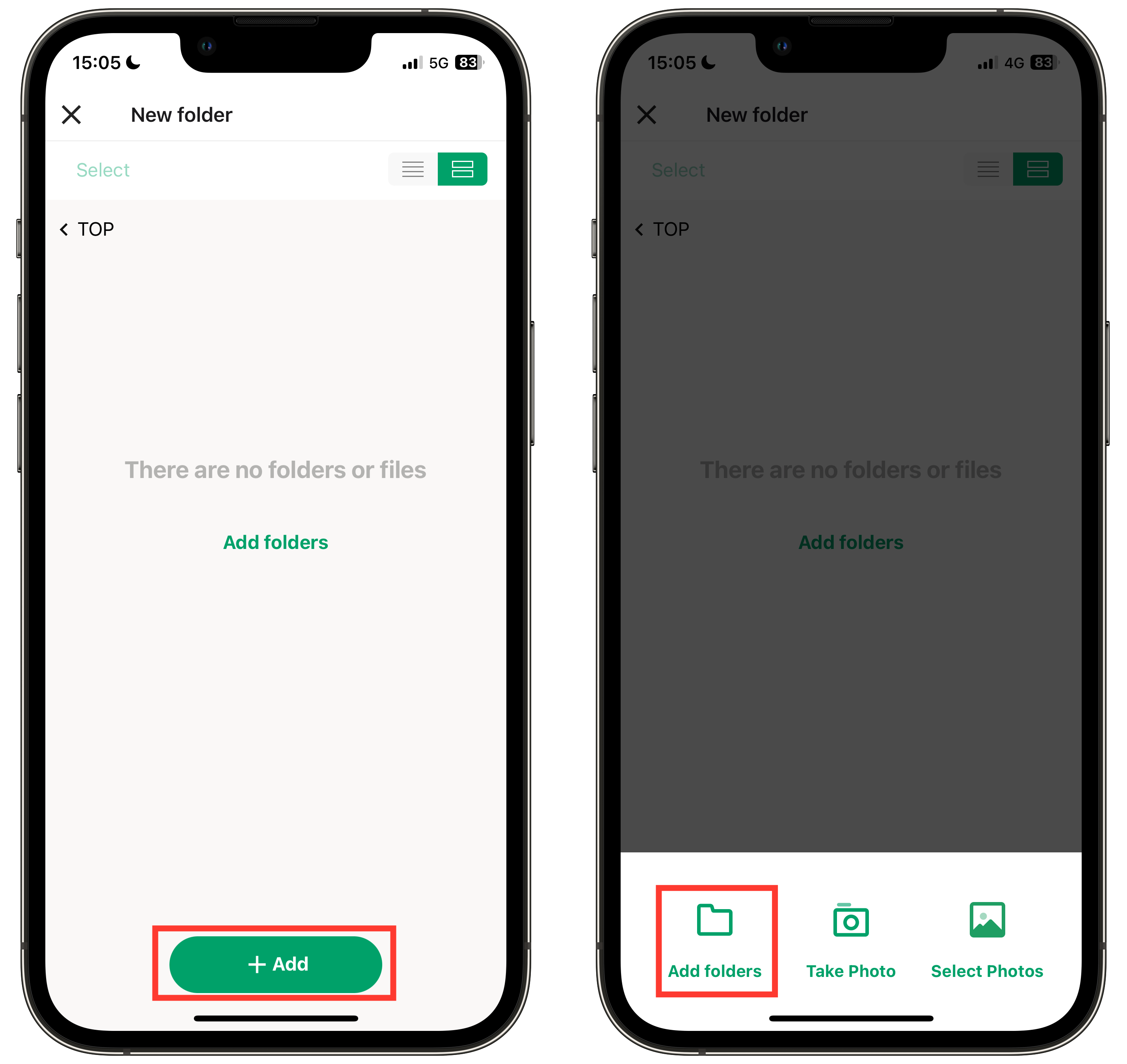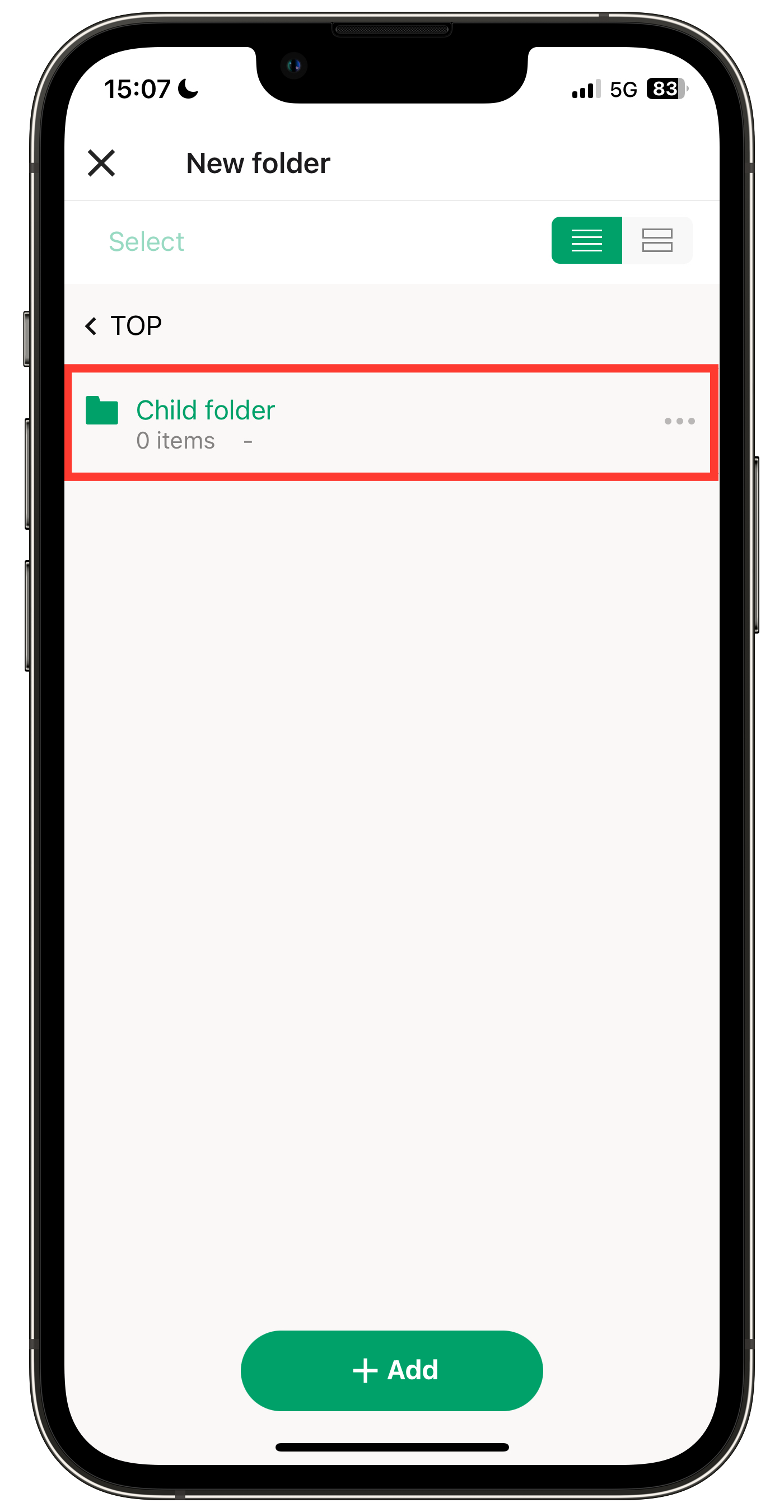 2. Ketuk "+ Tambah" dan pilih "Tambah Folder".