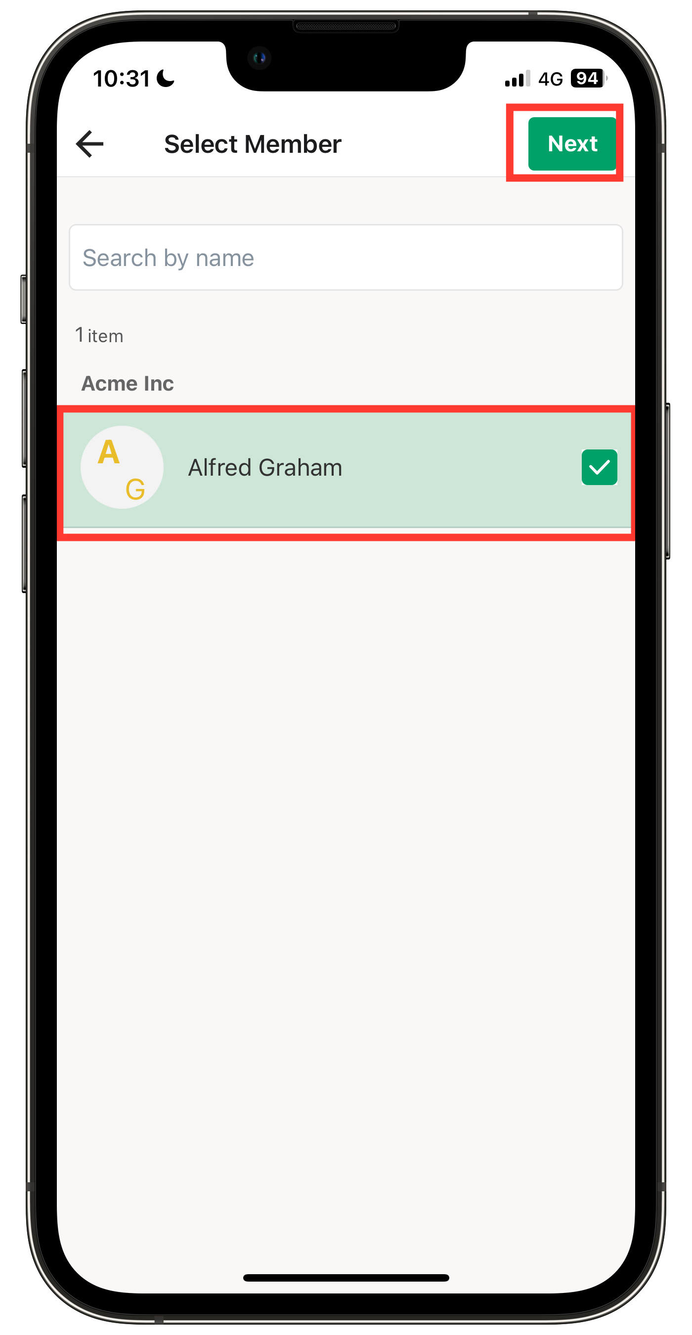 4. Pilih anggota yang ingin Anda tambahkan dan klik Berikutnya.