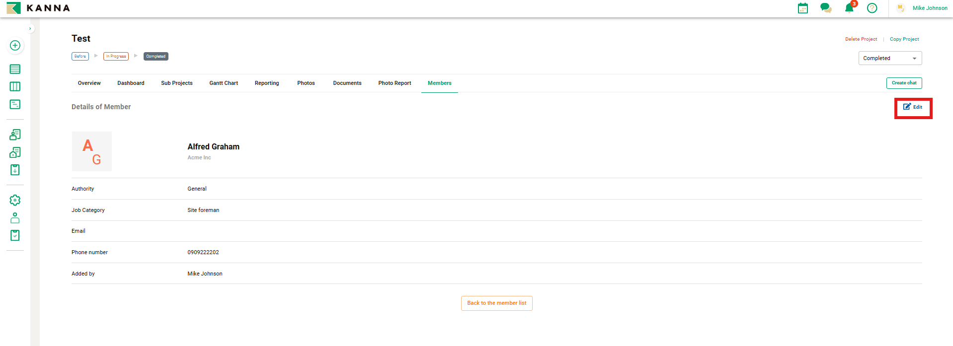 Setelah membuat proyek, Anda dapat berbagi informasi terkait proyek (seperti detail proyek, foto, dan dokumen) dengan menugaskan anggota ke proyek tersebut.