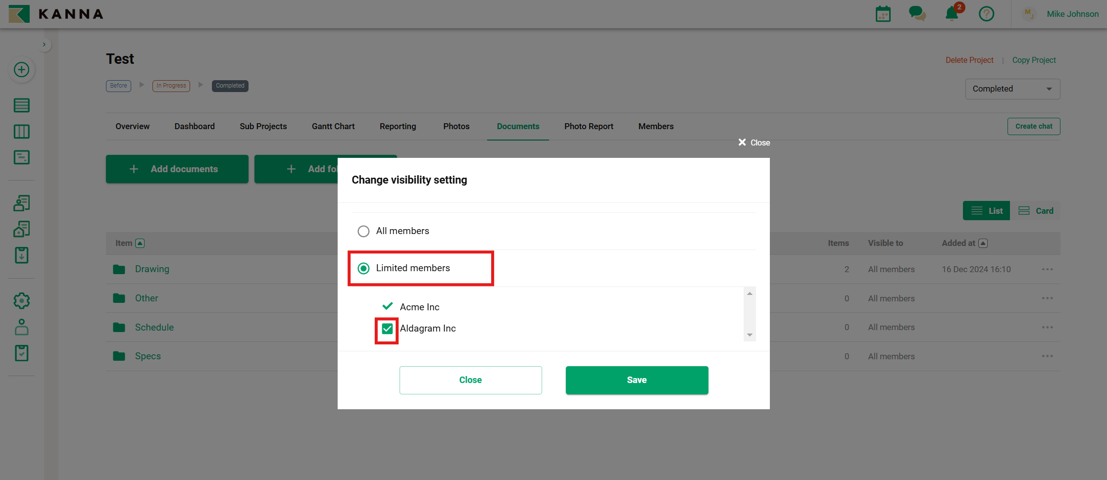 Akses Terbatas: Anda dapat memilih perusahaan tertentu dalam proyek untuk mereka melihat folder tersebut.
