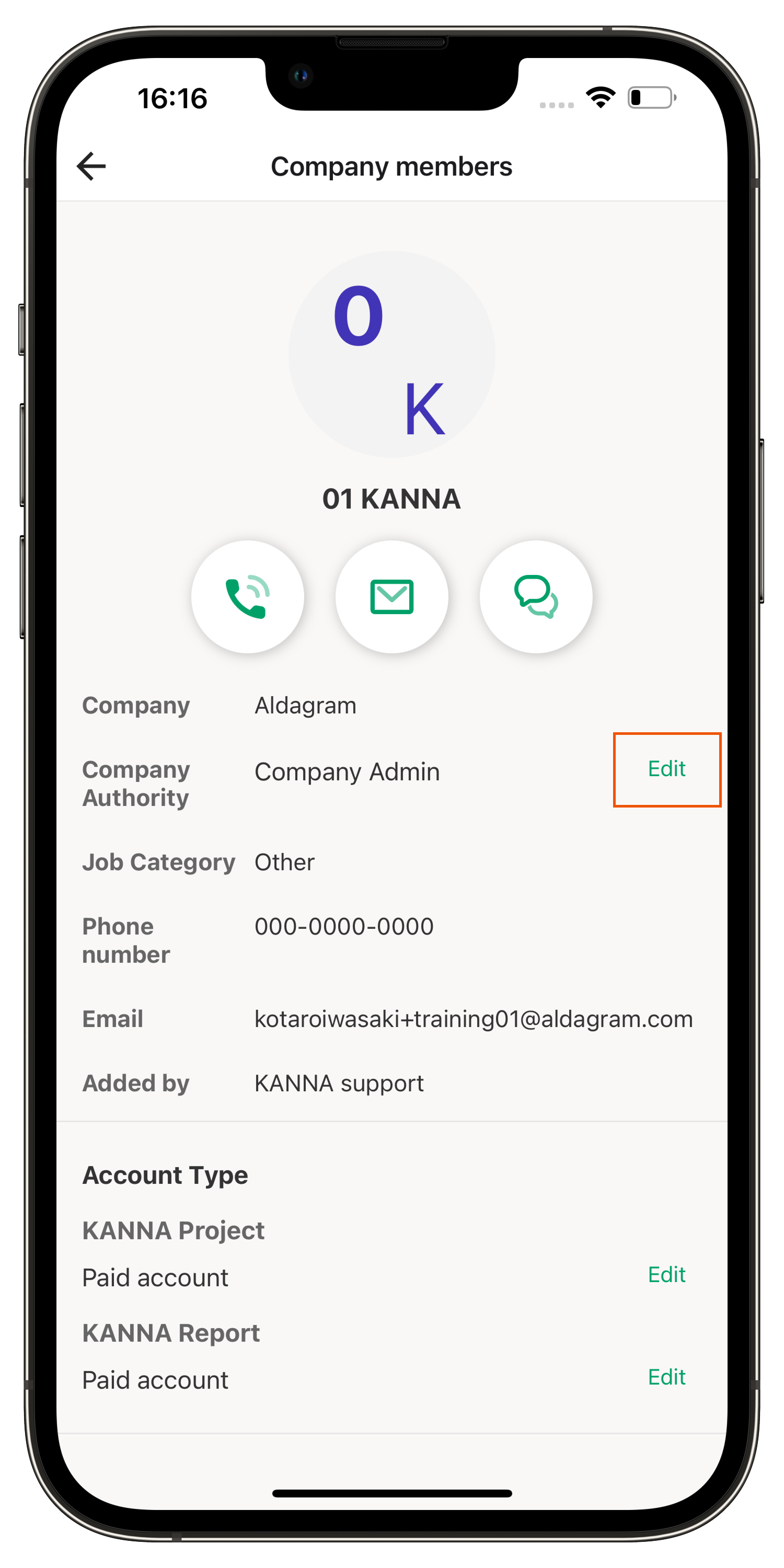 3. Ketuk Otoritas Perusahaan "Edit".