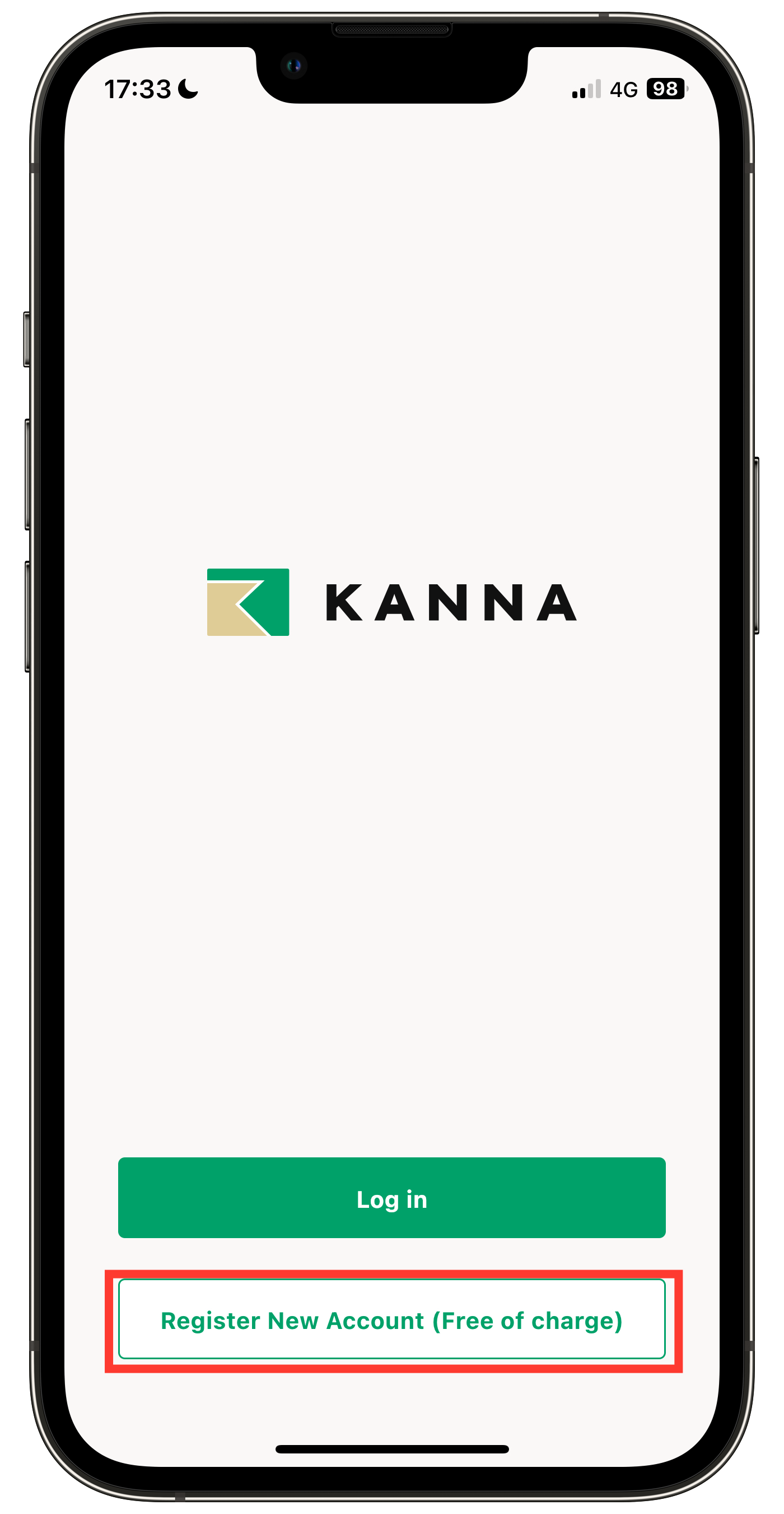 1. Buka KANNA dan pilih "Daftar Akun Baru (Gratis)".