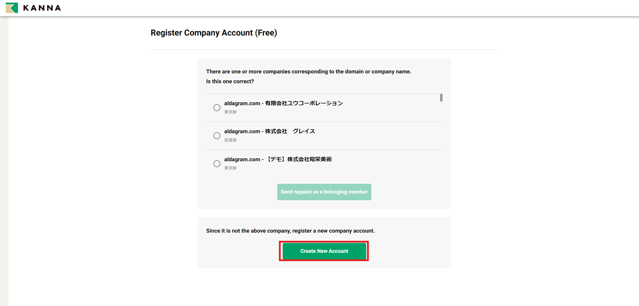 Jika perusahaan Anda menggunakan KANNA untuk pertama kalinya, Anda perlu membuat akun perusahaan. Akun perusahaan dapat didaftarkan melalui aplikasi atau web.