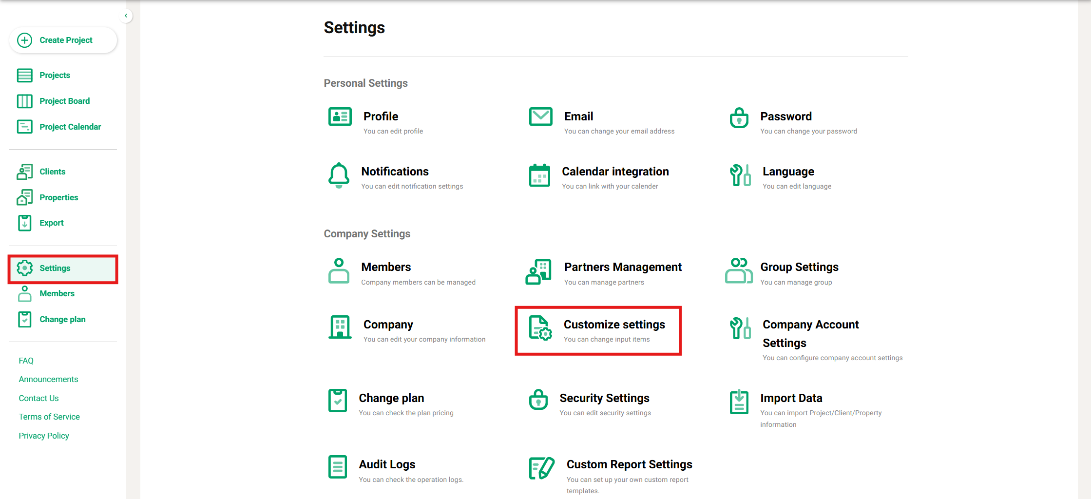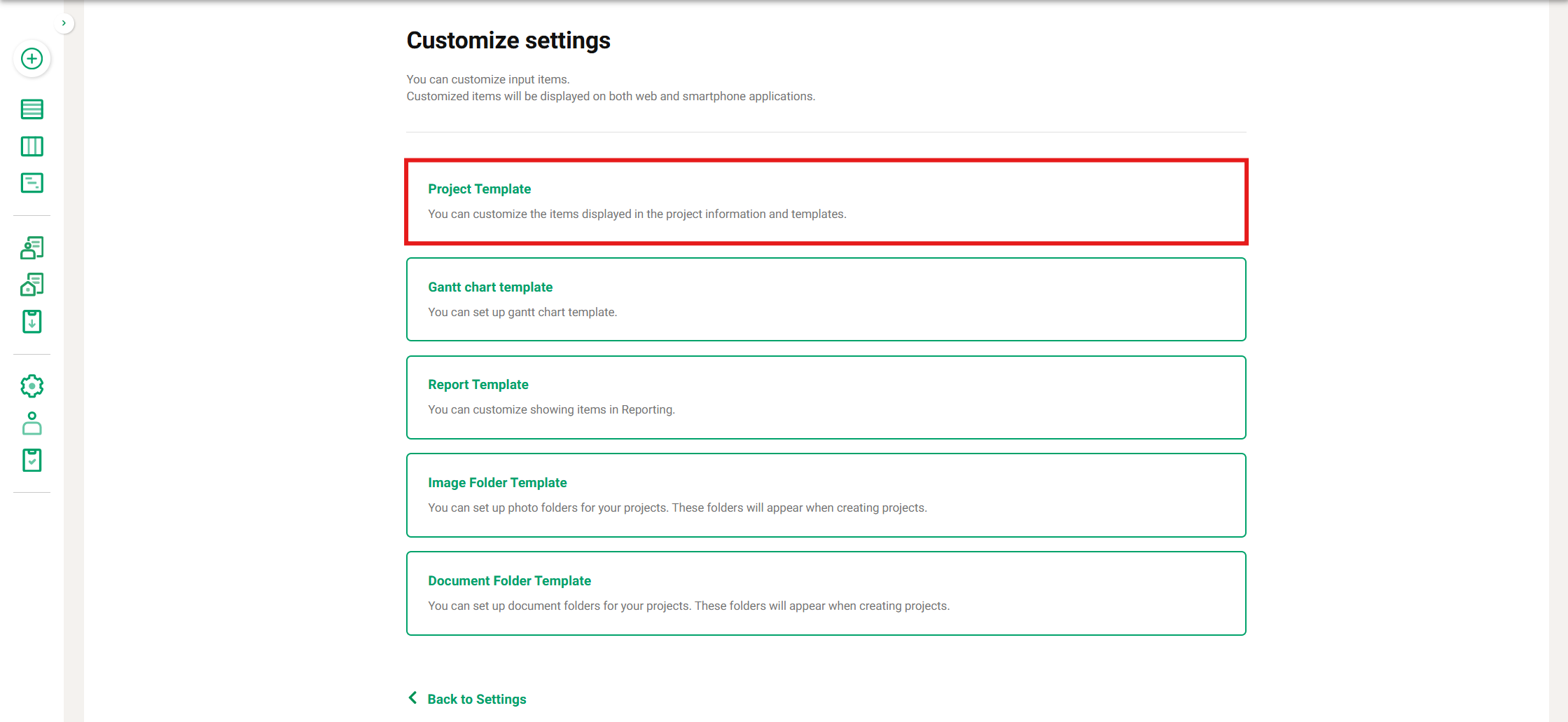 Jika Anda mengklik "Tambah/Ubah", Anda akan diarahkan ke halaman pengaturan master proyek, dan dapat menambah/mengubah item di sana. Silakan merujuk ke halaman ini untuk melihat cara menambah/mengubah item.