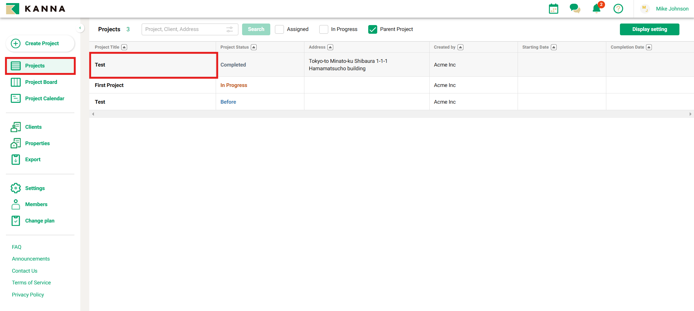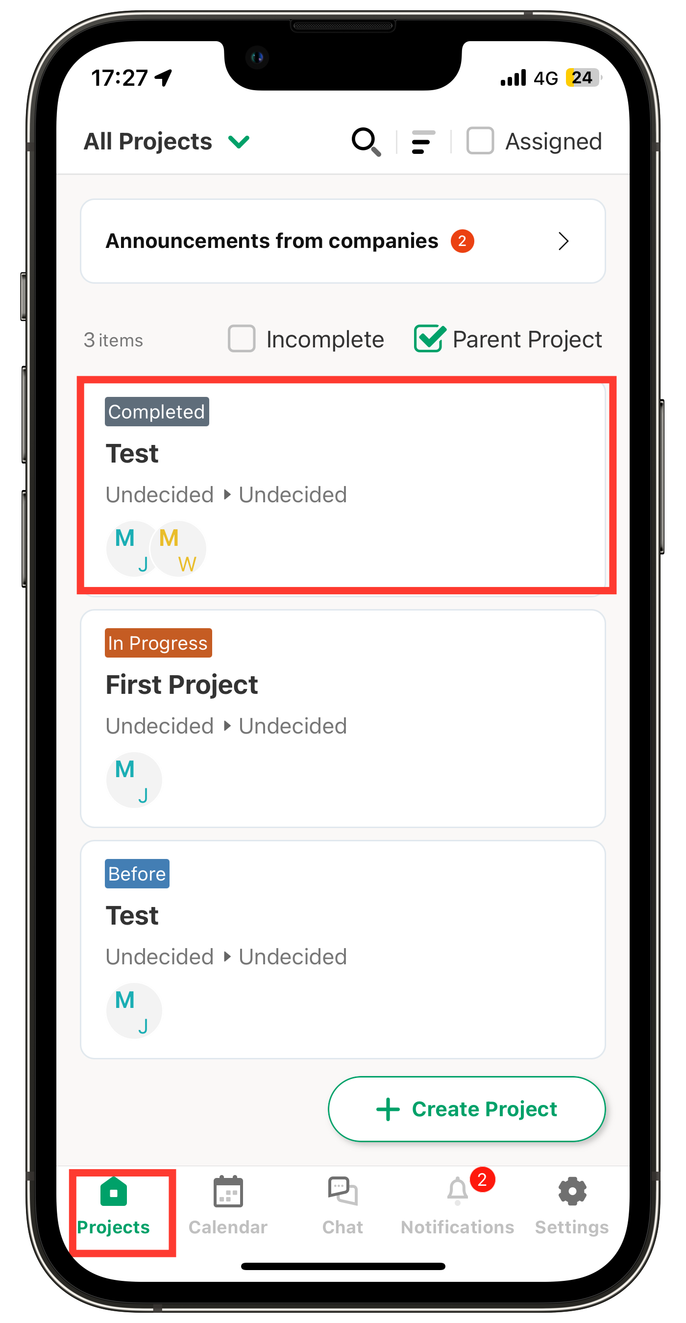 1. Ketuk sebuah proyek dari tab "Proyek".