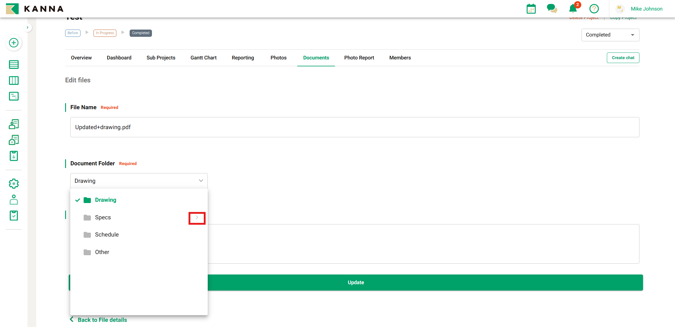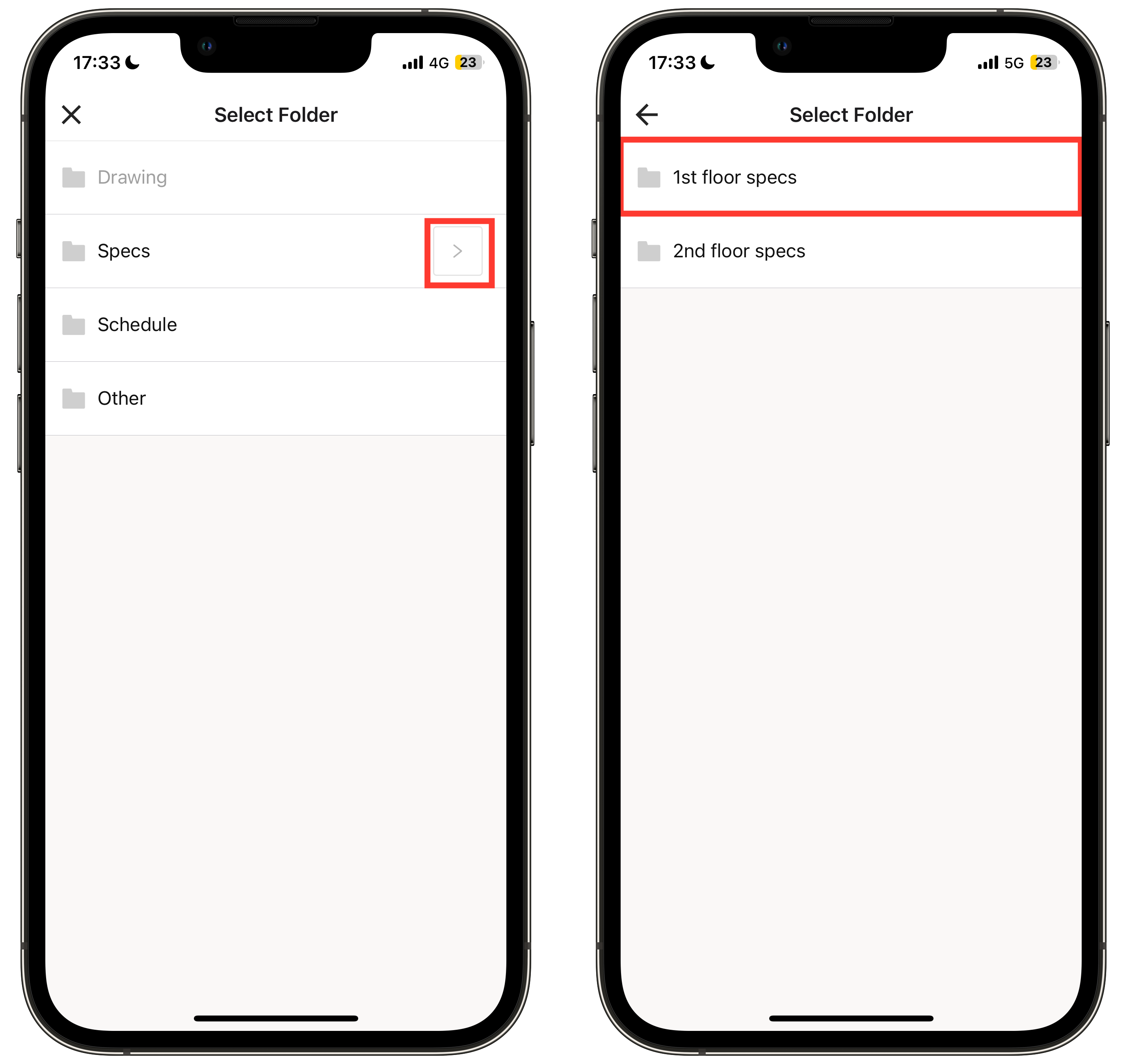 Jika Anda ingin memindahkan file ke subfolder, ketuk ">" lalu pilih subfolder yang diinginkan dari daftar.