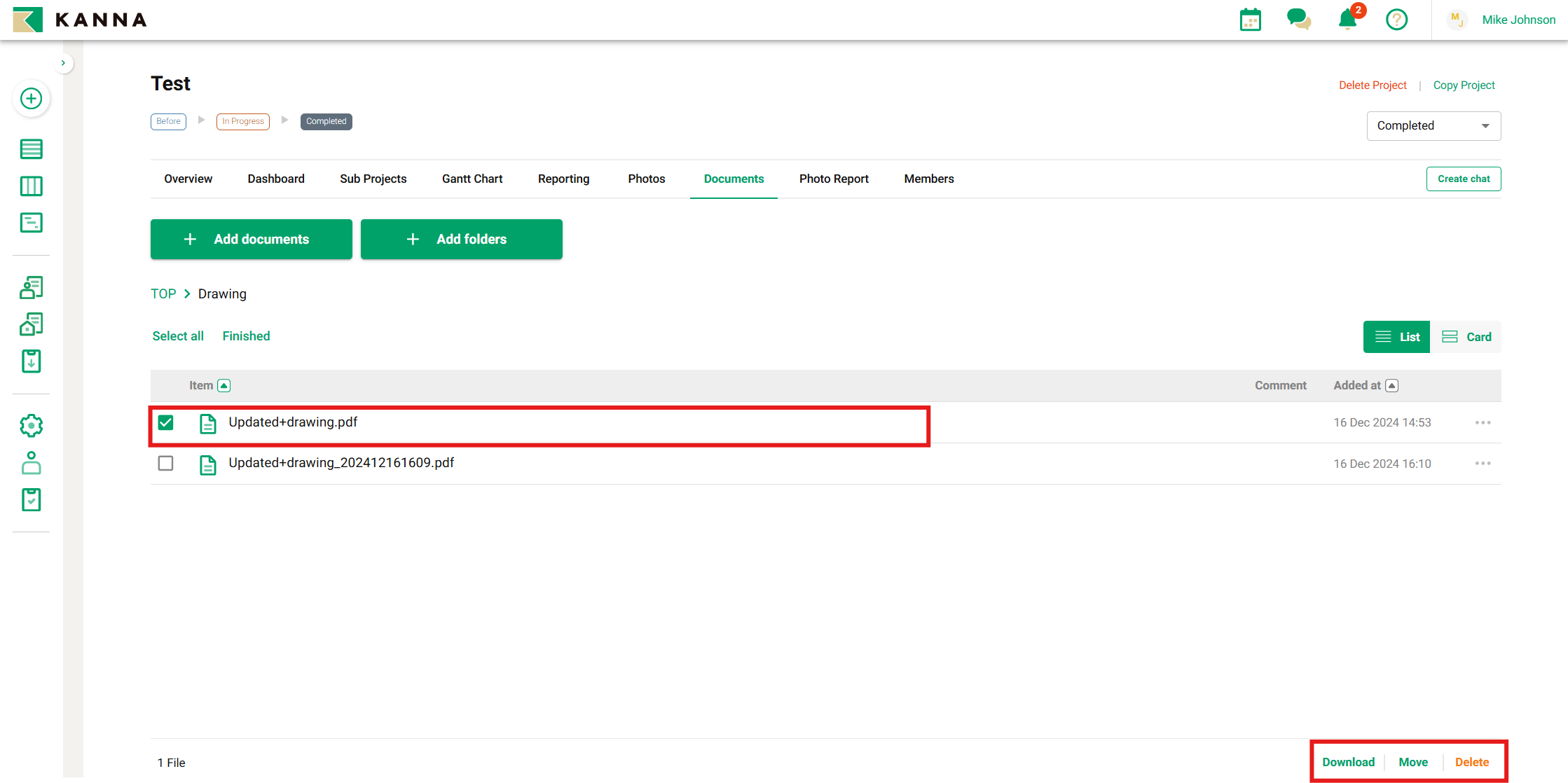 Anda dapat mengunduh, memindahkan ke folder lain, menghapus, mengganti nama, dan menambahkan komentar.