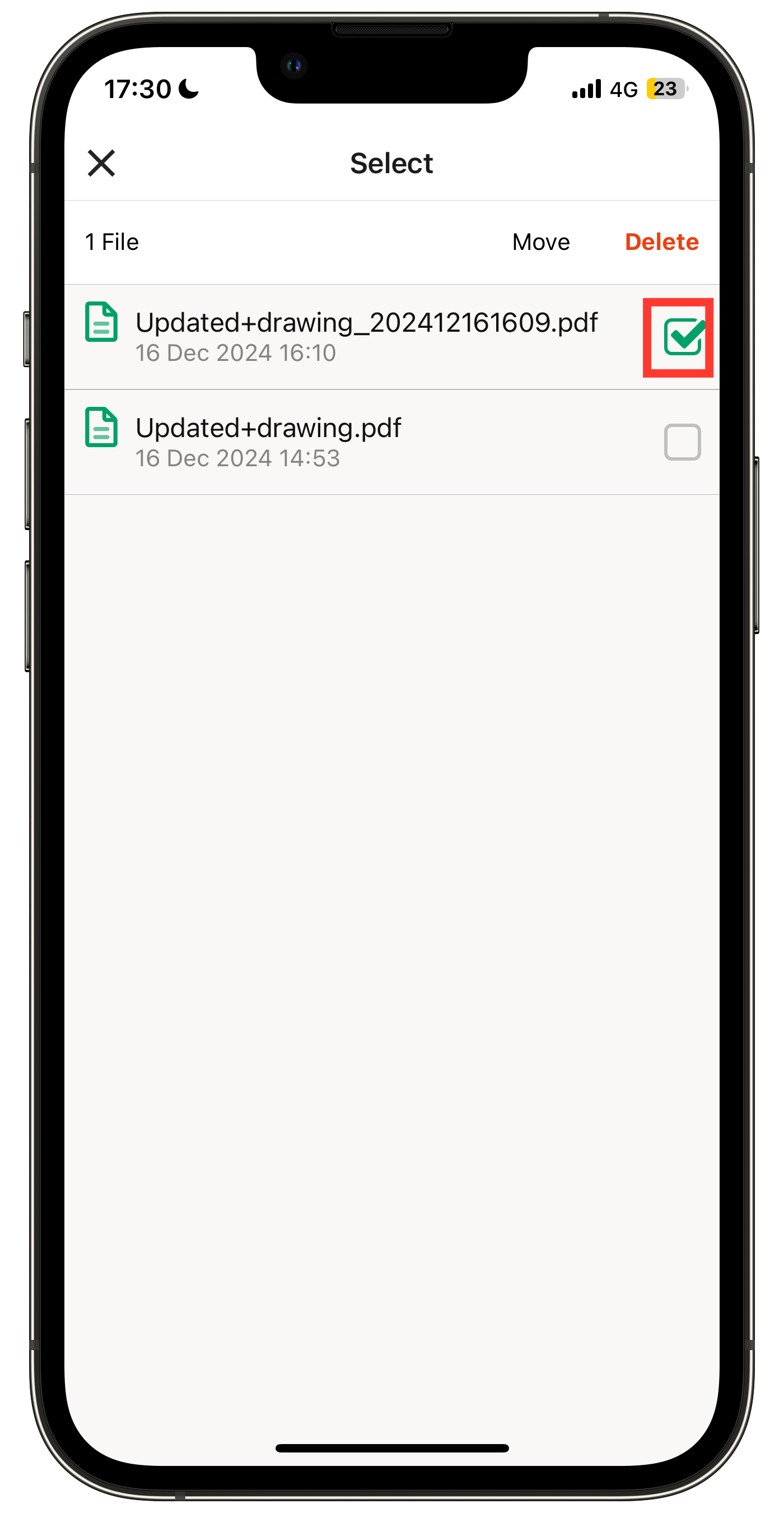 Anda dapat memilih beberapa file sekaligus untuk memindahkan atau menghapusnya (lihat gambar kedua sebagai referensi).