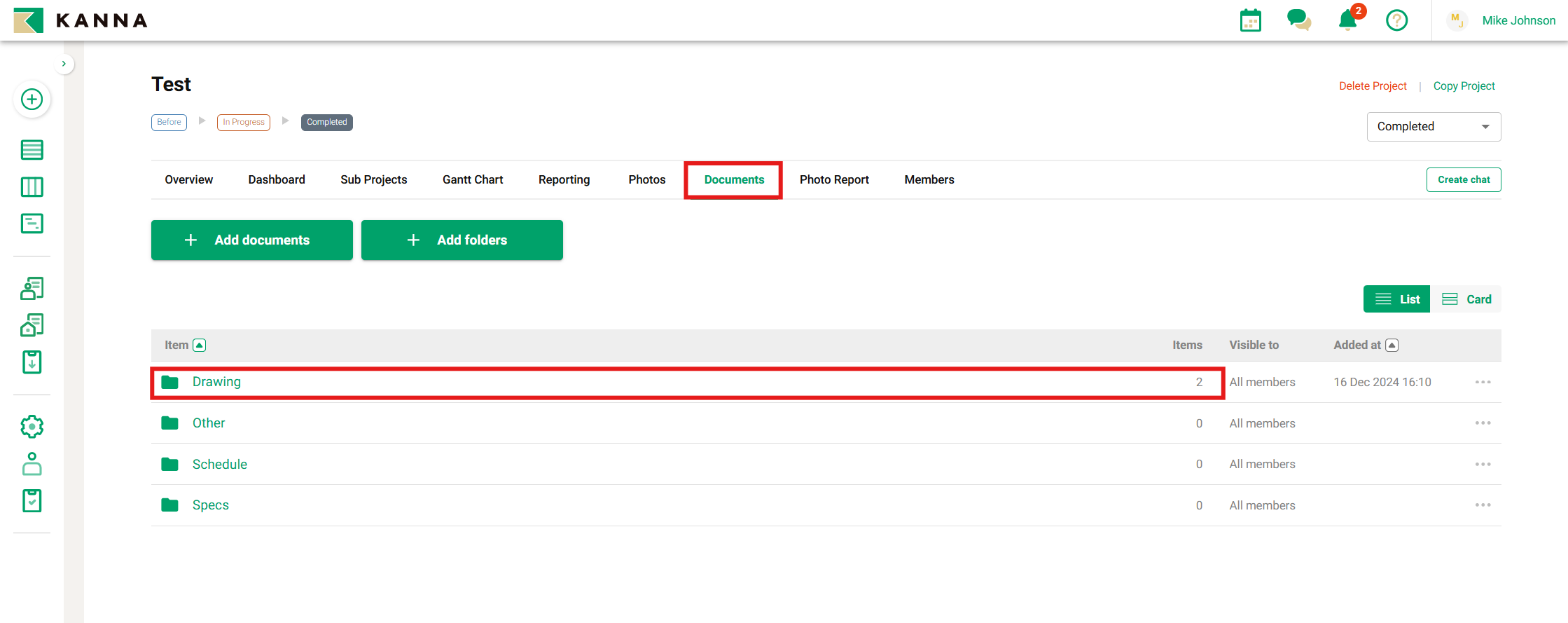 2. Pilih tab "Dokumen/Docs" di atas dan pilih folder dari Dokumen.