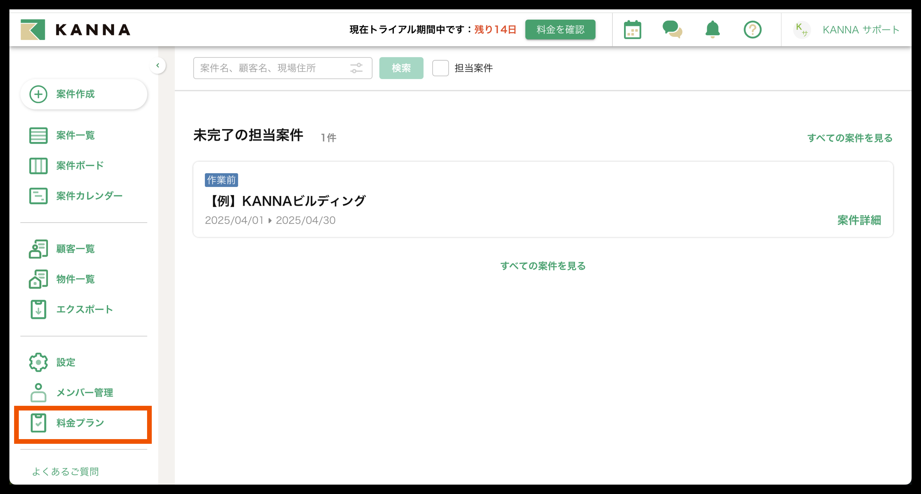 KANNAでは、会社アカウント作成後14日間、無料トライアルをご利用いただけます。