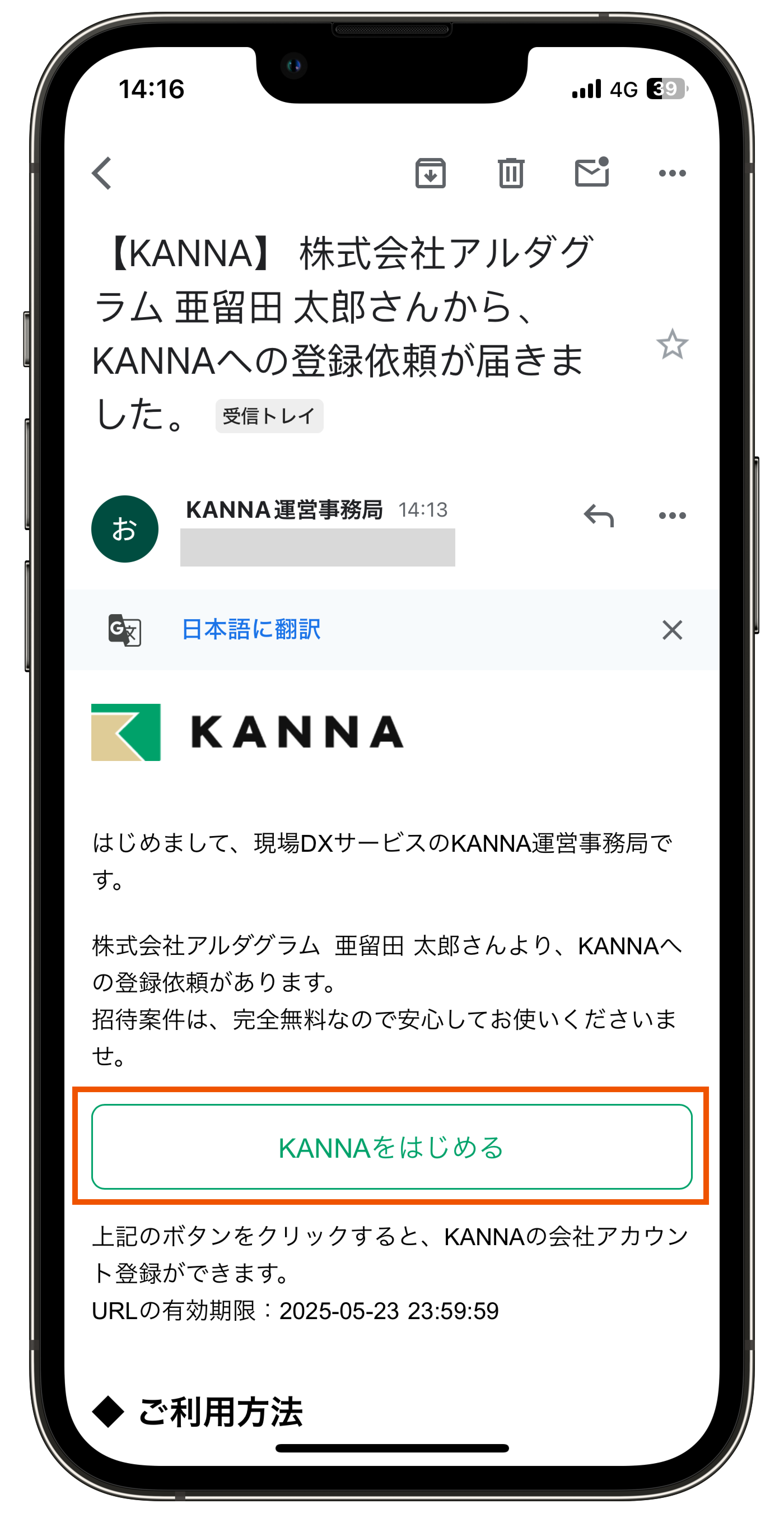 1. 自社メンバーとして招待をしてもらい、アカウント登録する