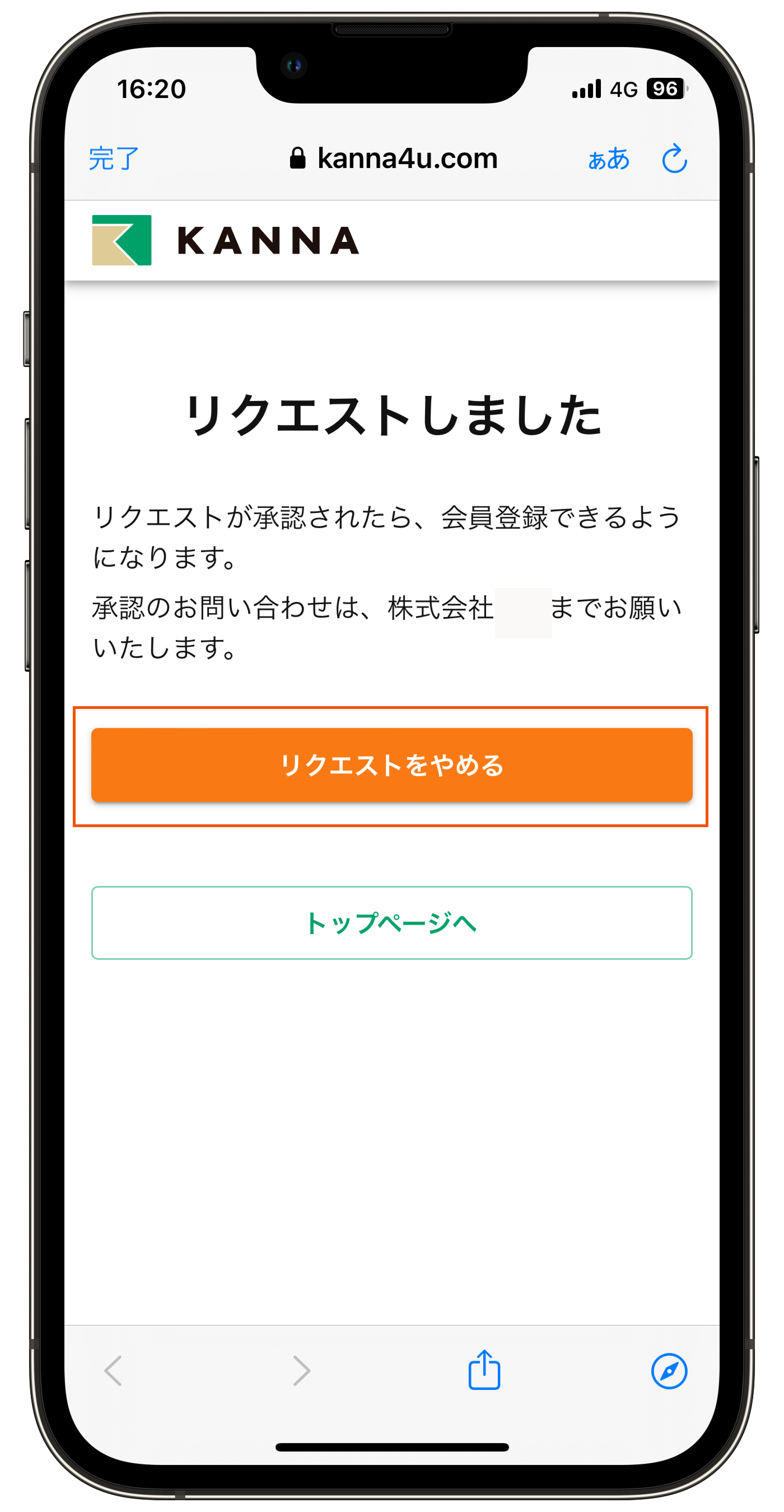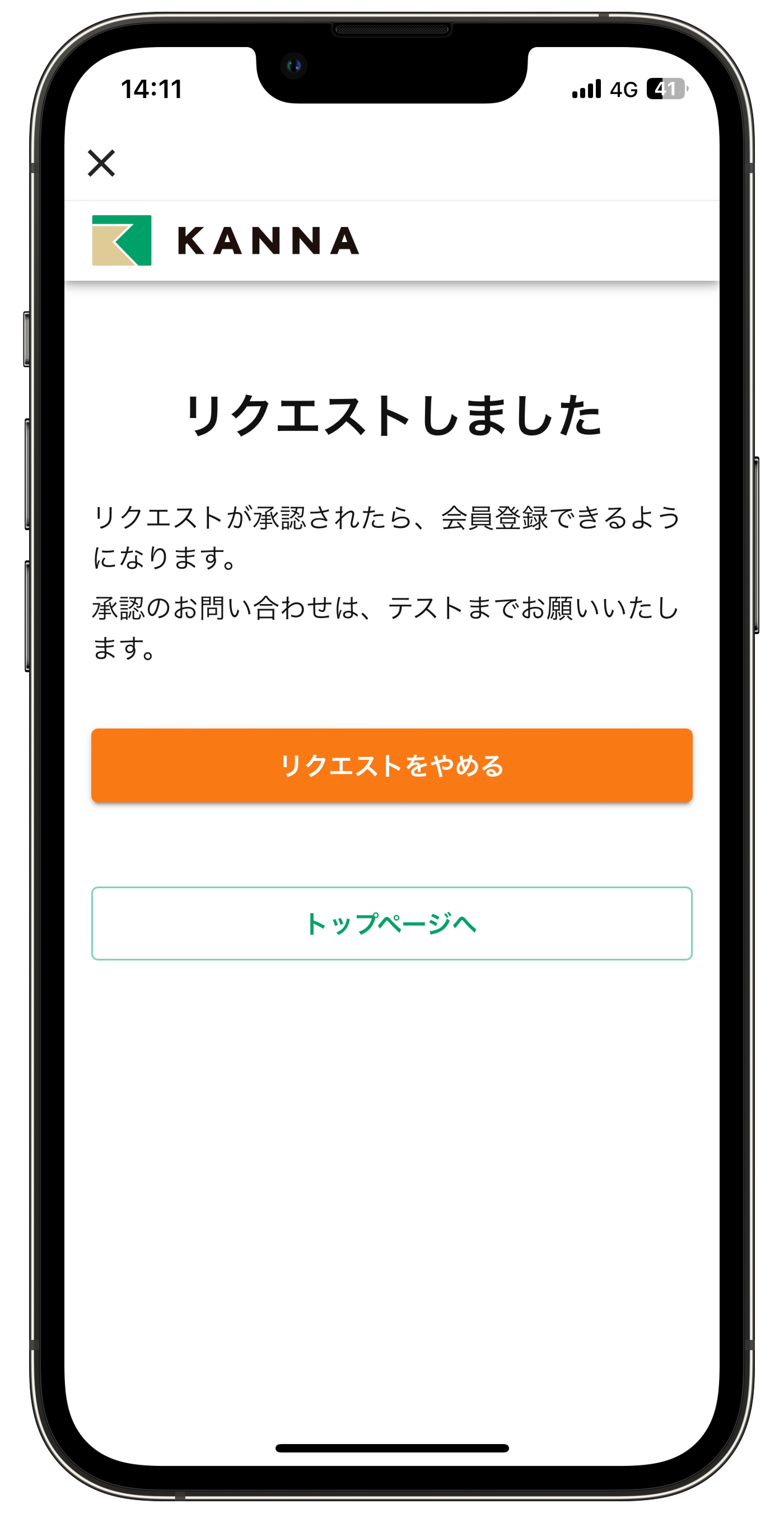 既にKANNAを登録している自社メンバーからの招待を経由せず、他社の有料会員(元請け会社等)から他社招待を受け、新規アカウント登録をしようとしている場合、所属リクエストを送り承認していただくことで、同じ会社内のメンバーとなることが出来ます。(以下画像参考)