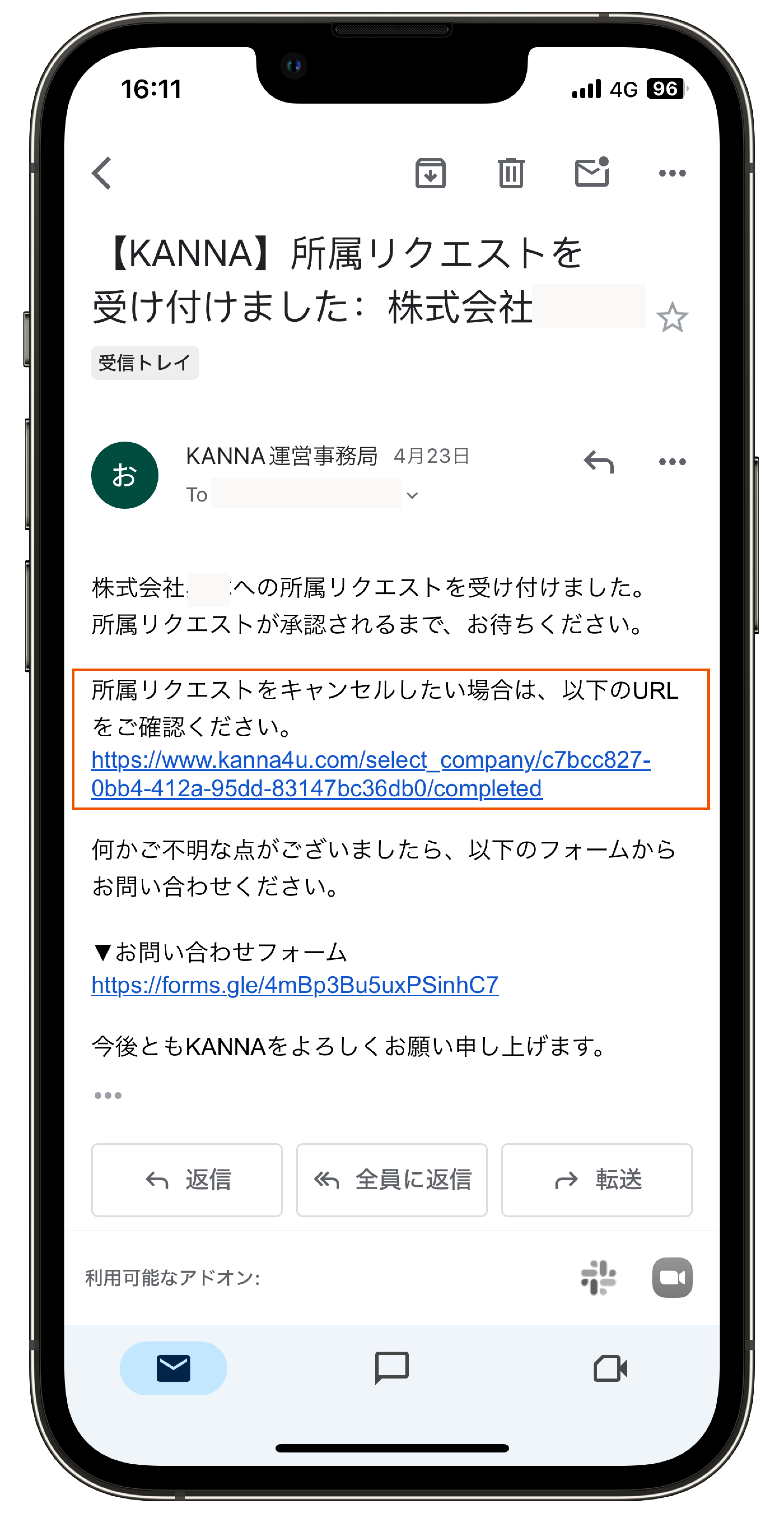 1.所属リクエストを送った際に届くメールに記載されているURLをタップ