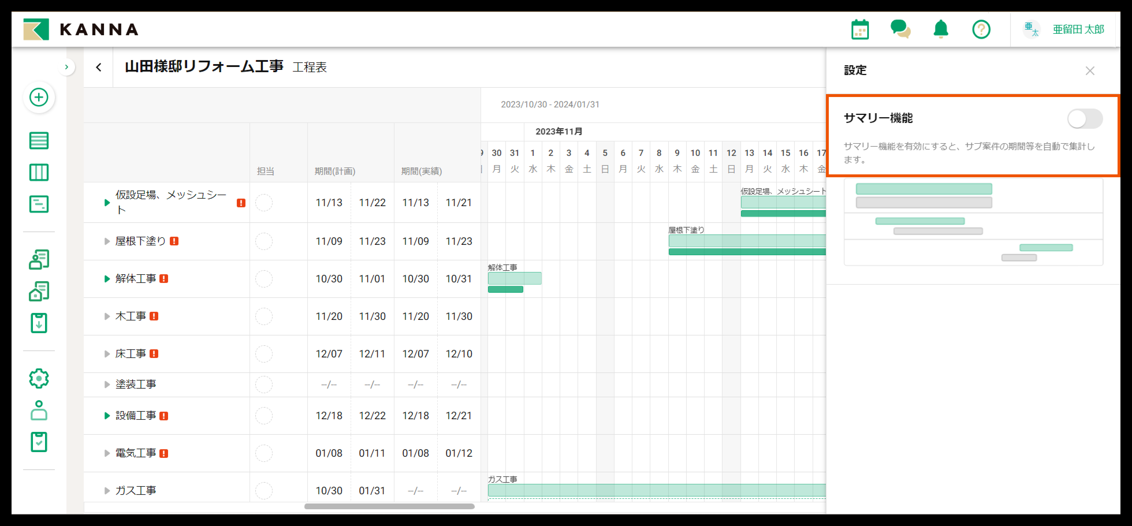 本記事では工程表の予実管理機能のひとつであるサマリー機能についてご説明します。