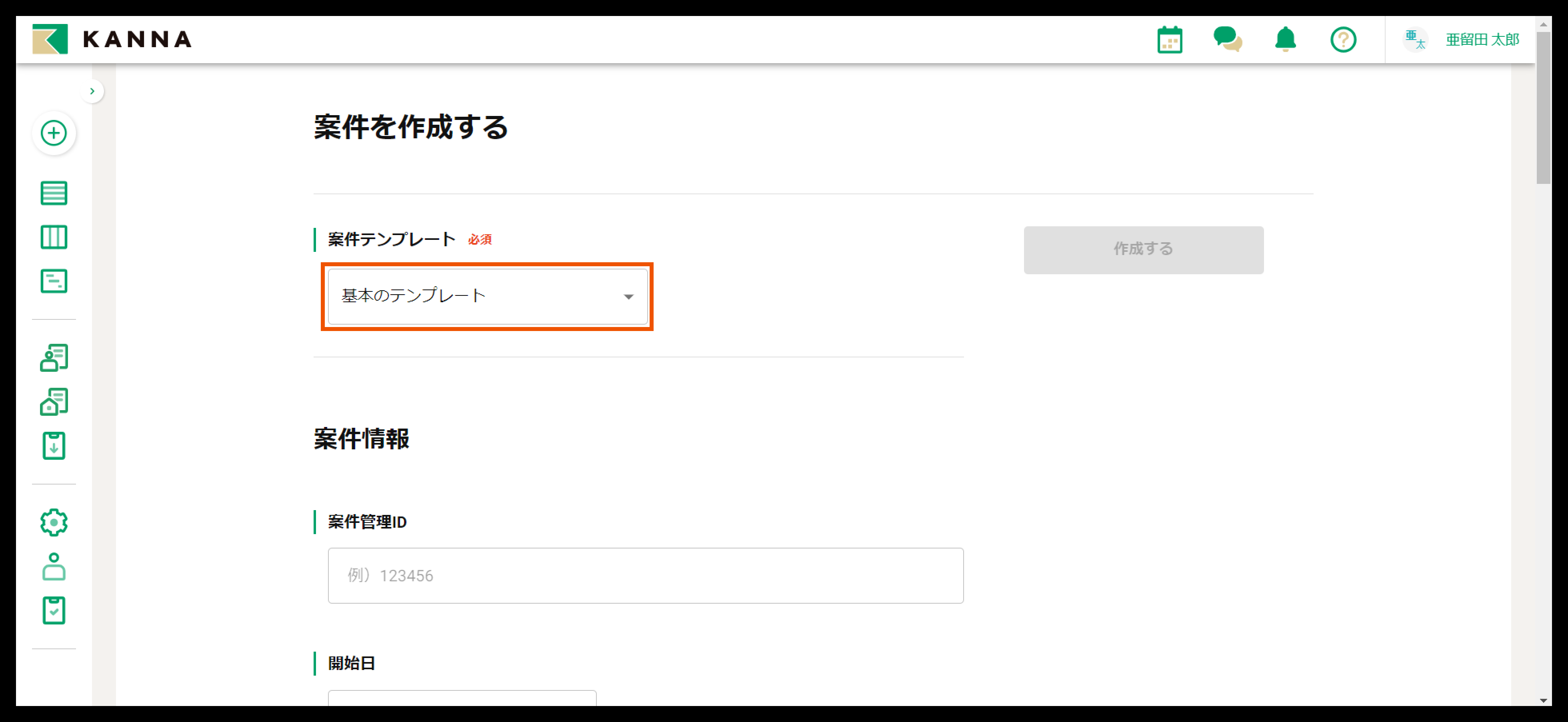 案件作成画面