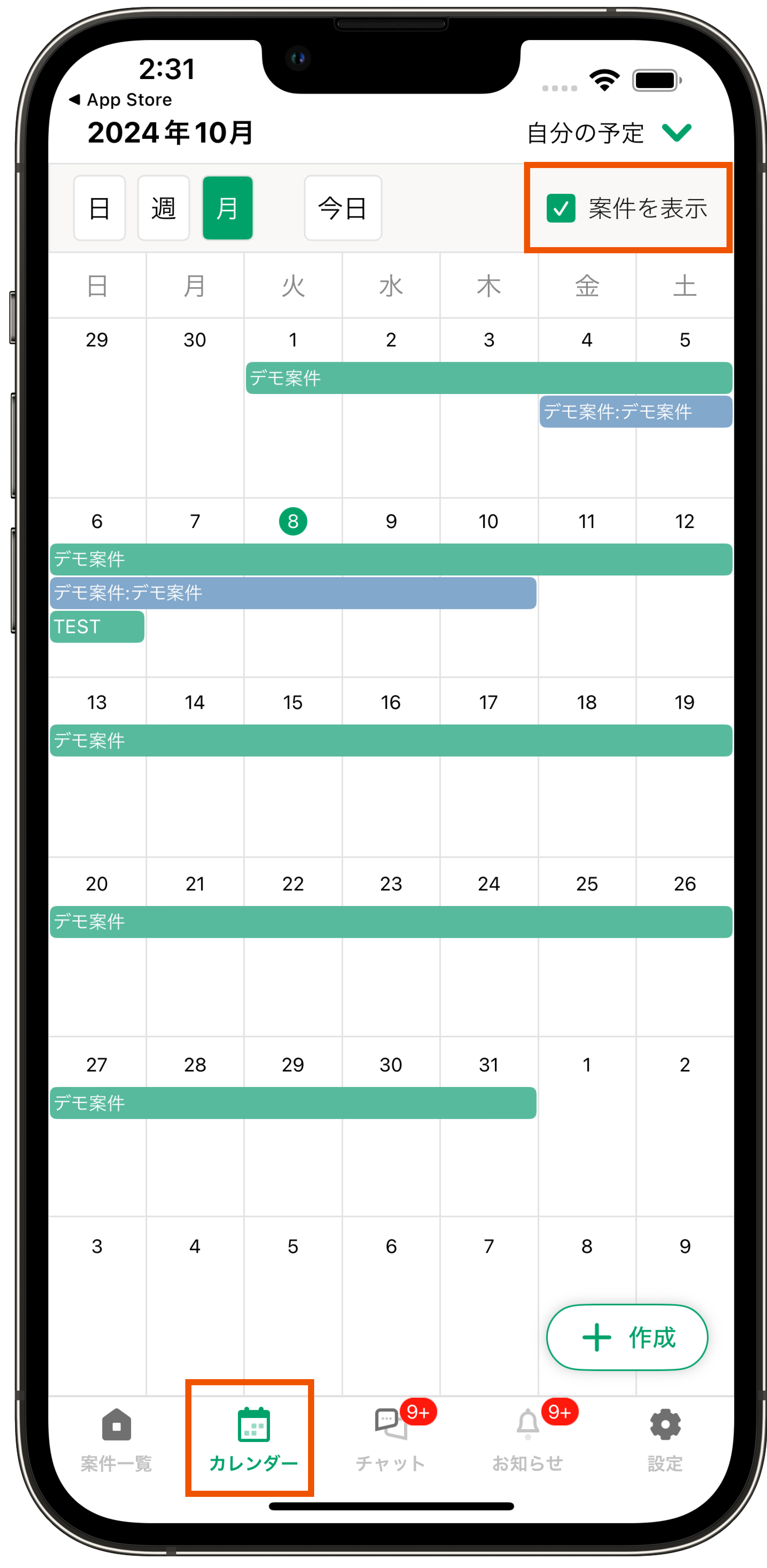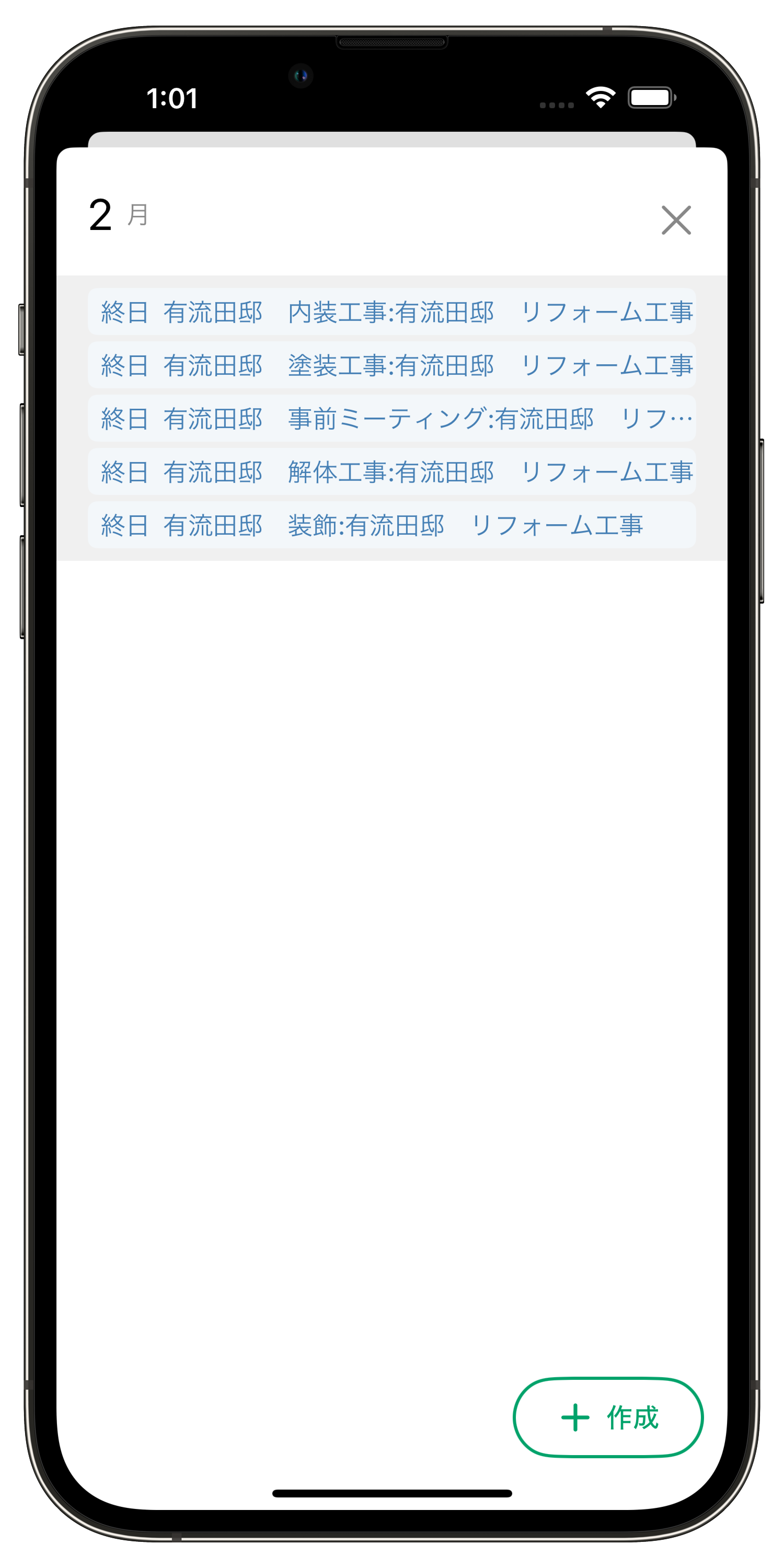 1.左上の【+作成】もしくは予定を作りたい日の空白部分をクリック