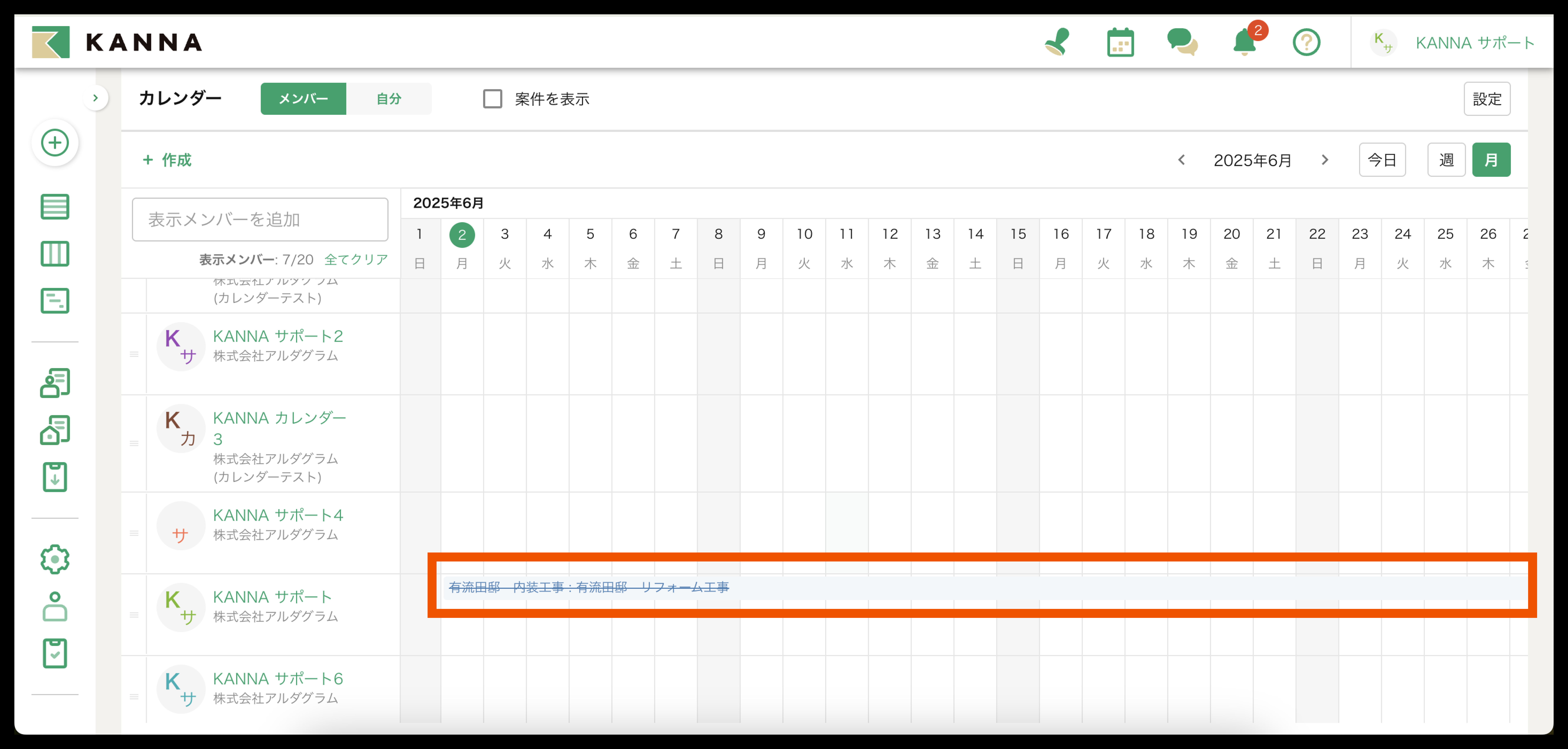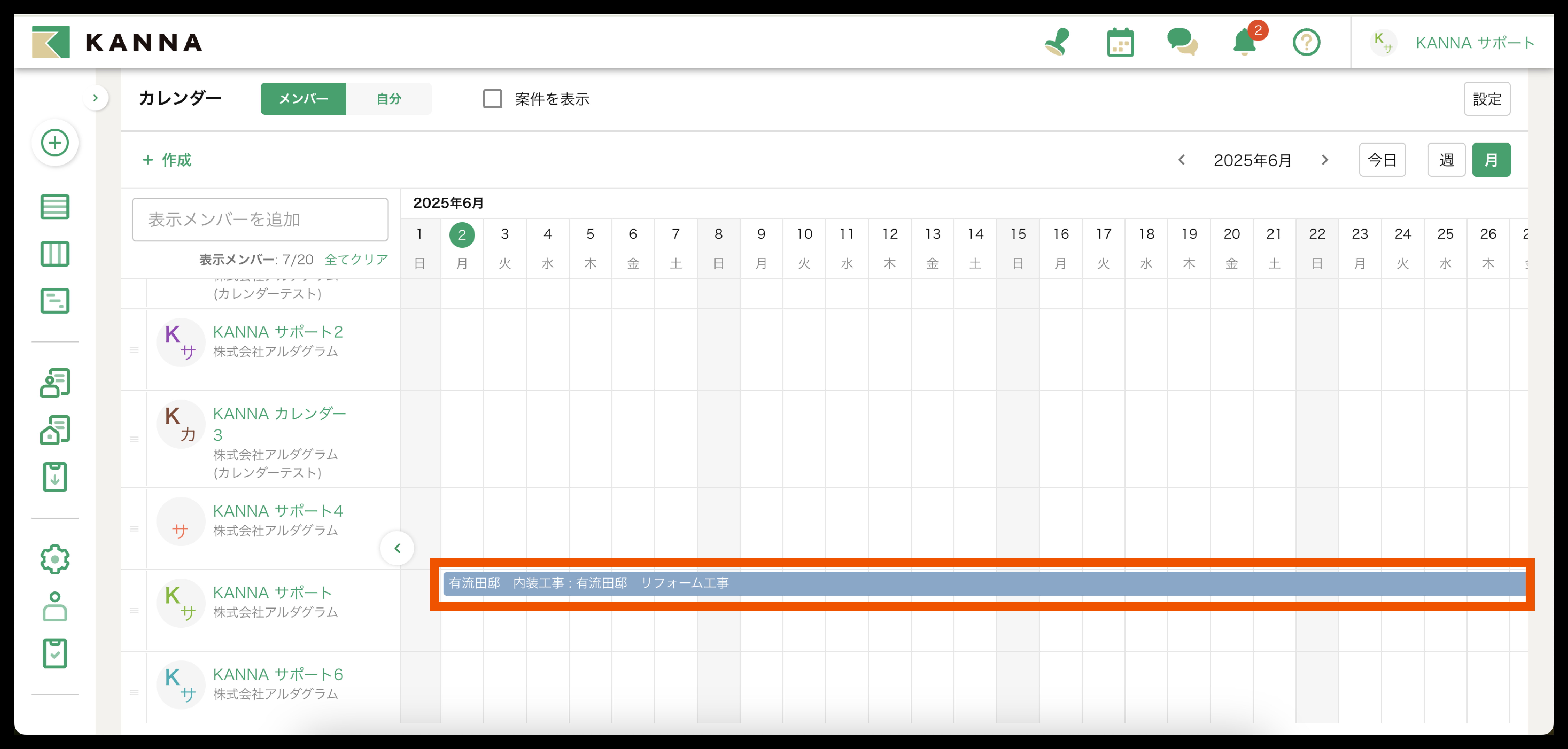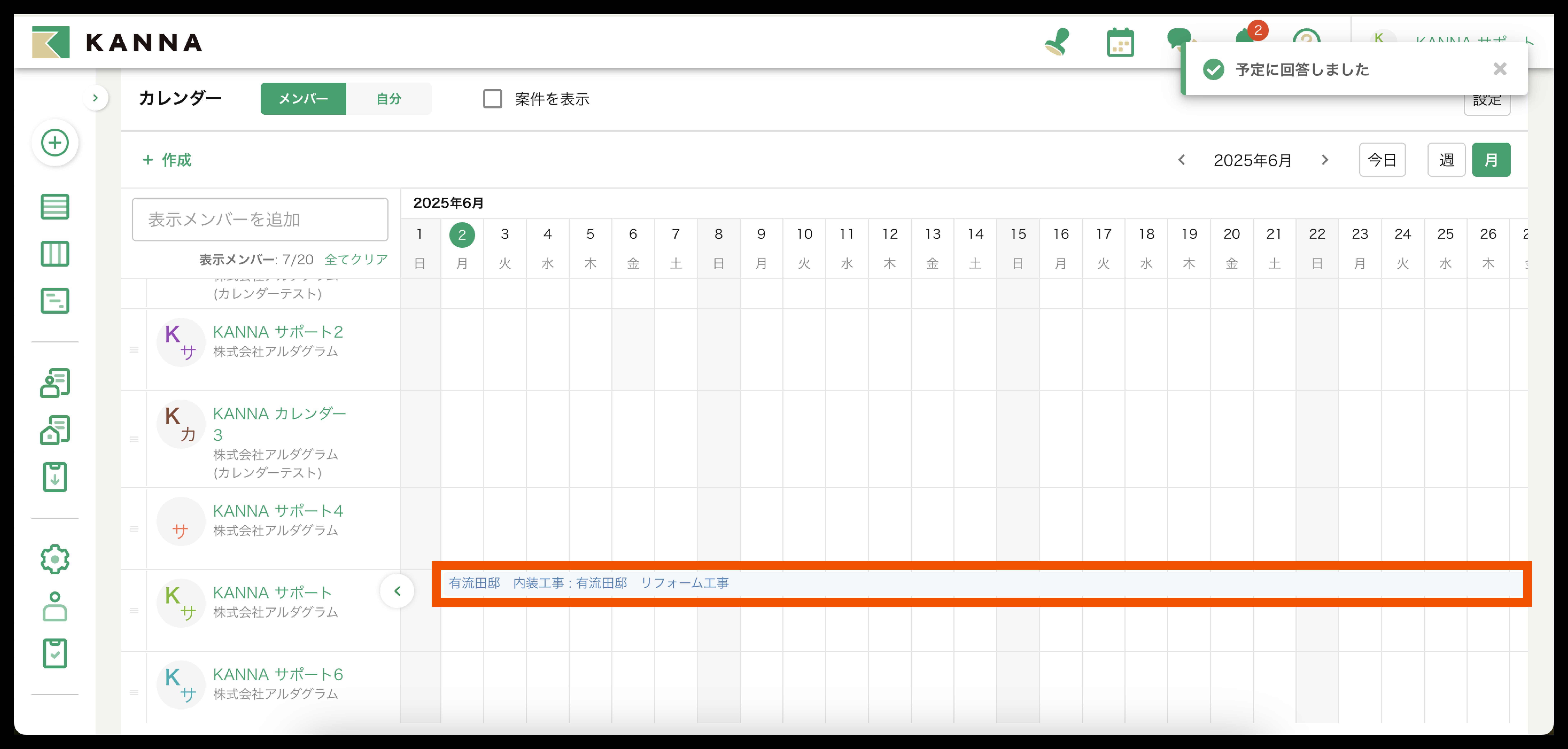 2. メンバーの予定から、案件に差配したい日程をクリック