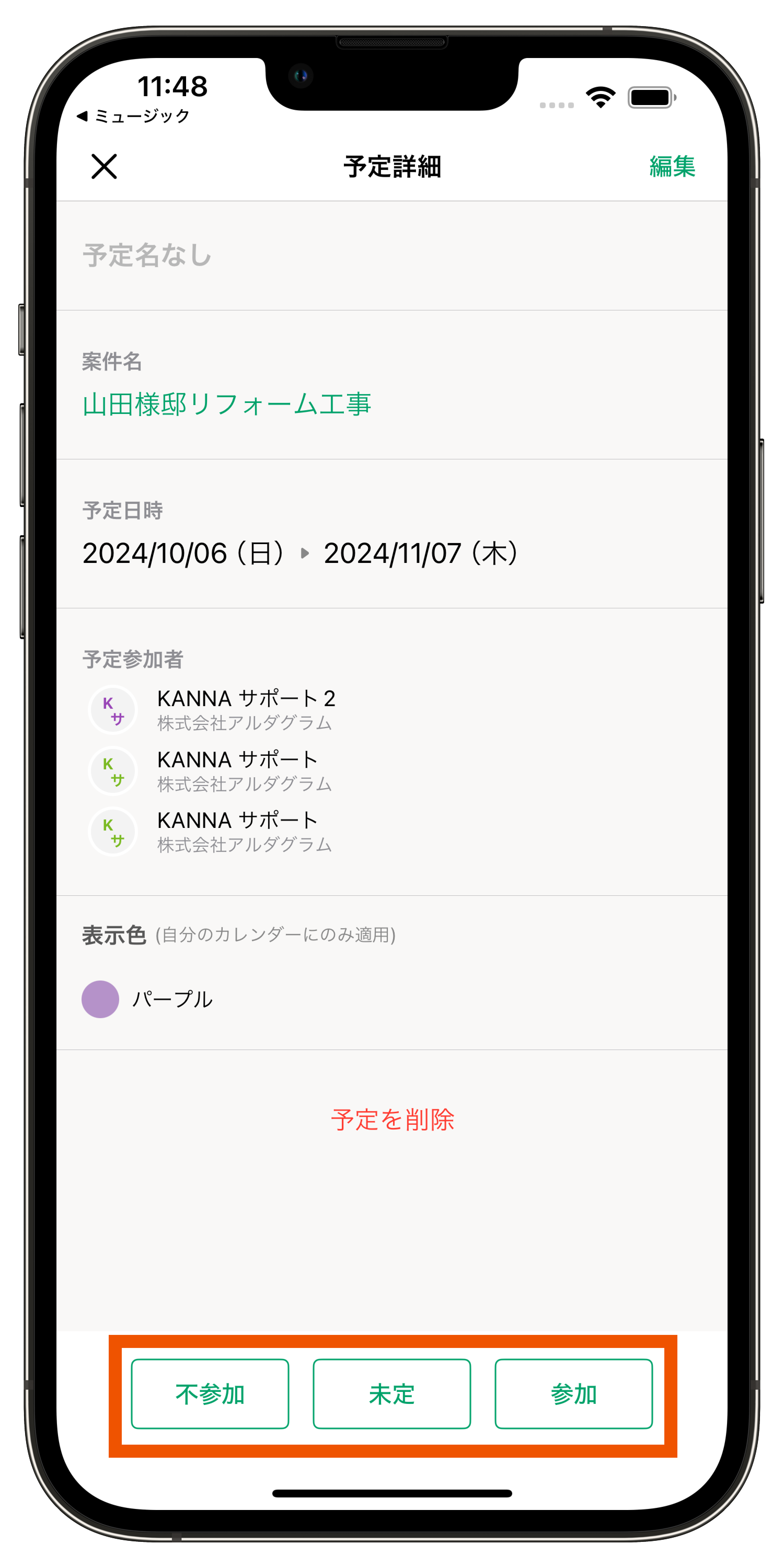 予定への参加または不参加の選択