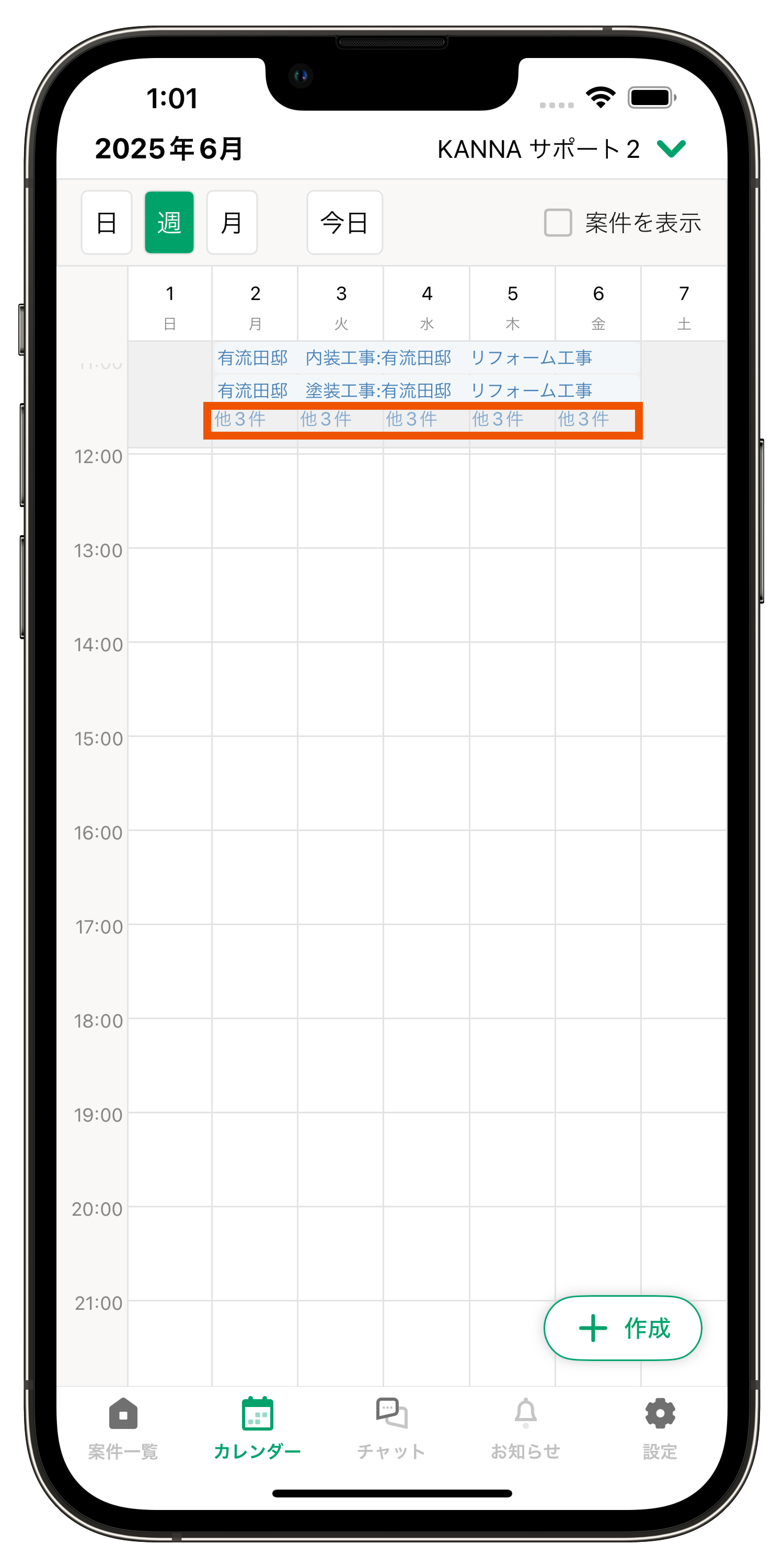 複数の予定や案件が重なった際は、【他〇件】と表示されます。