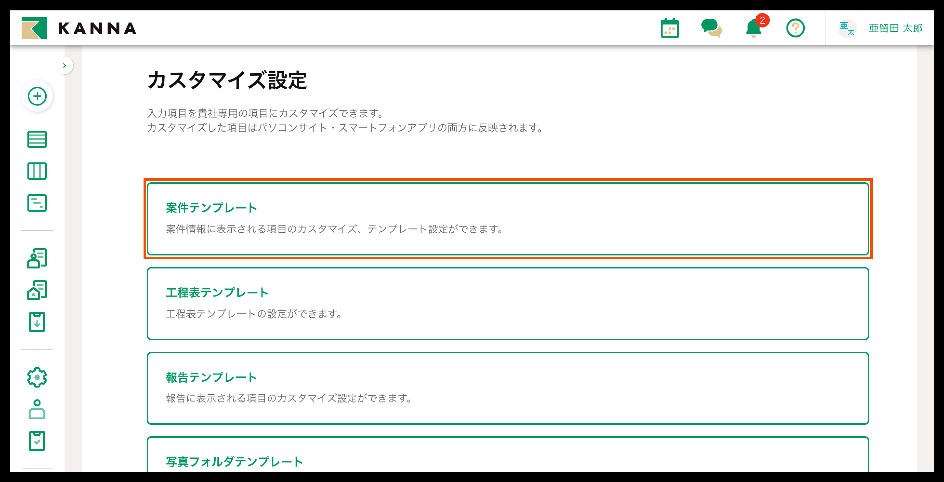 カスタマイズした写真/資料フォルダテンプレートを、案件テンプレートへ紐付けることができます。
