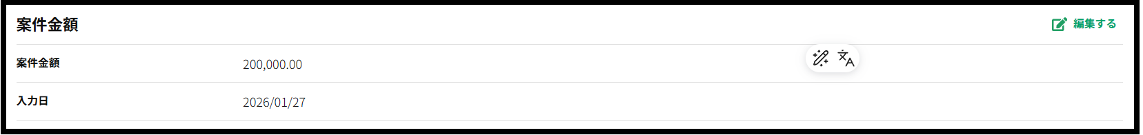 案件の金額を登録することができます、登録時には金額と一緒に入力日が自動で登録されます。