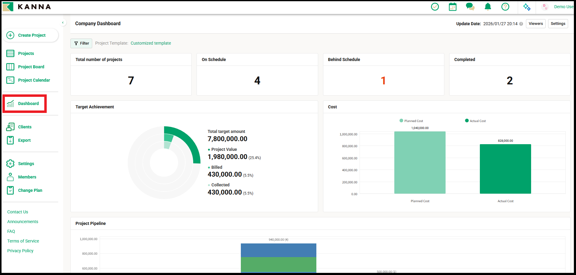 【KANNAプロジェクト】会社ダッシュボート