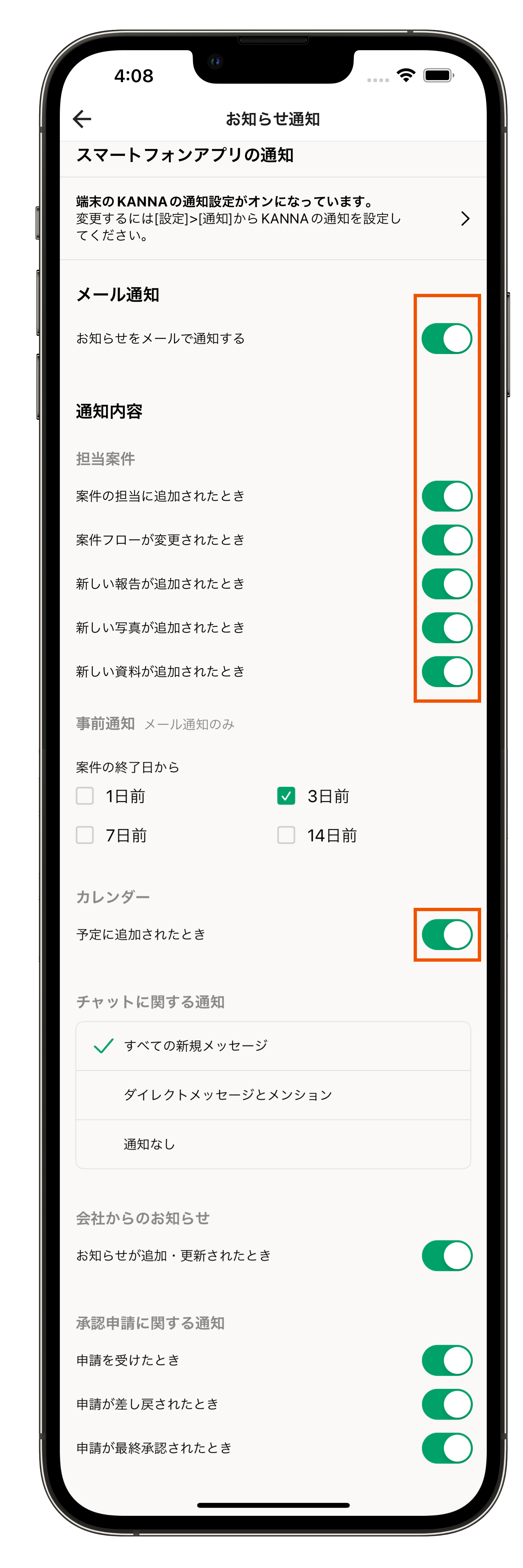 KANNAでは以下の通知内容でお知らせを受け取ることができます。