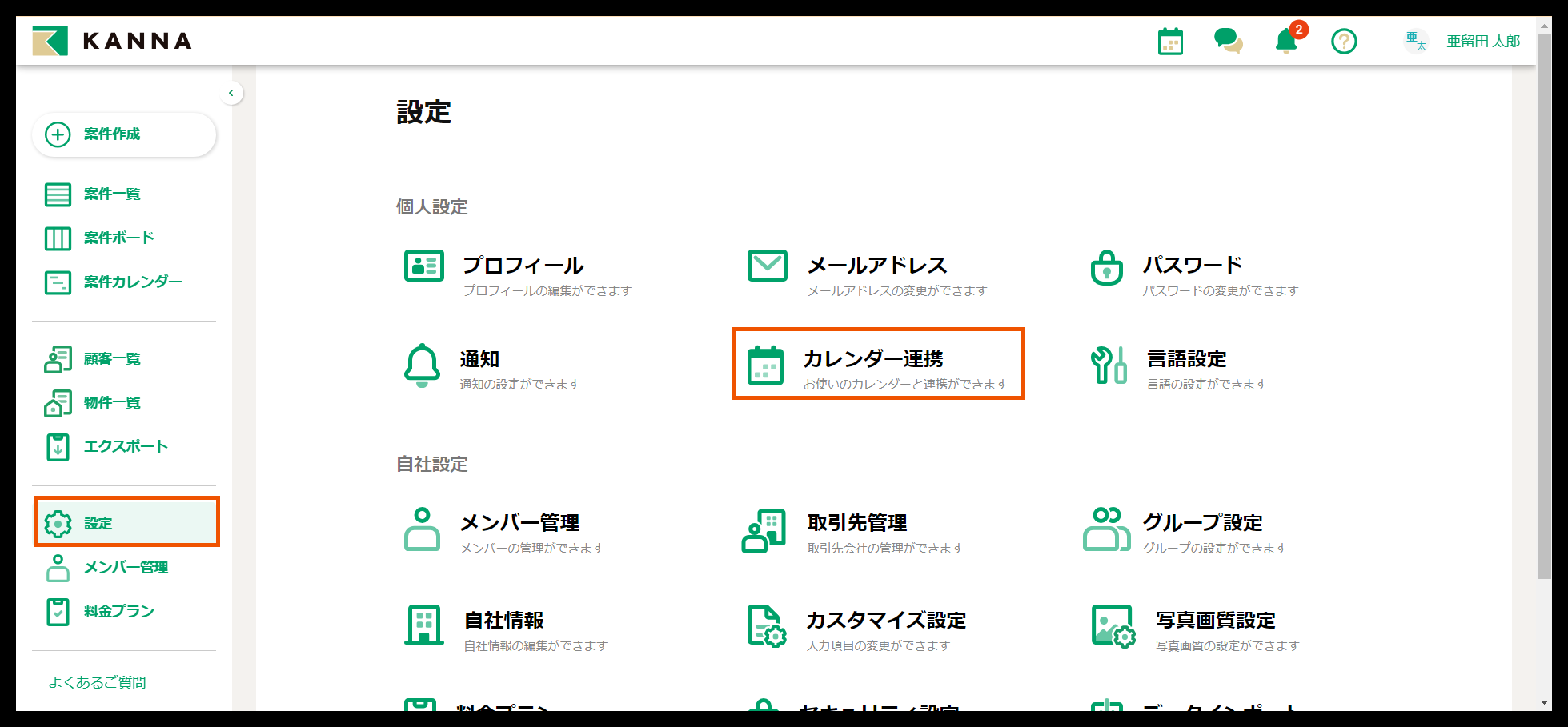 ※KANNAカレンダーで表示される案件を外部カレンダーへ反映することができます。(個人の予定は反映されません)
