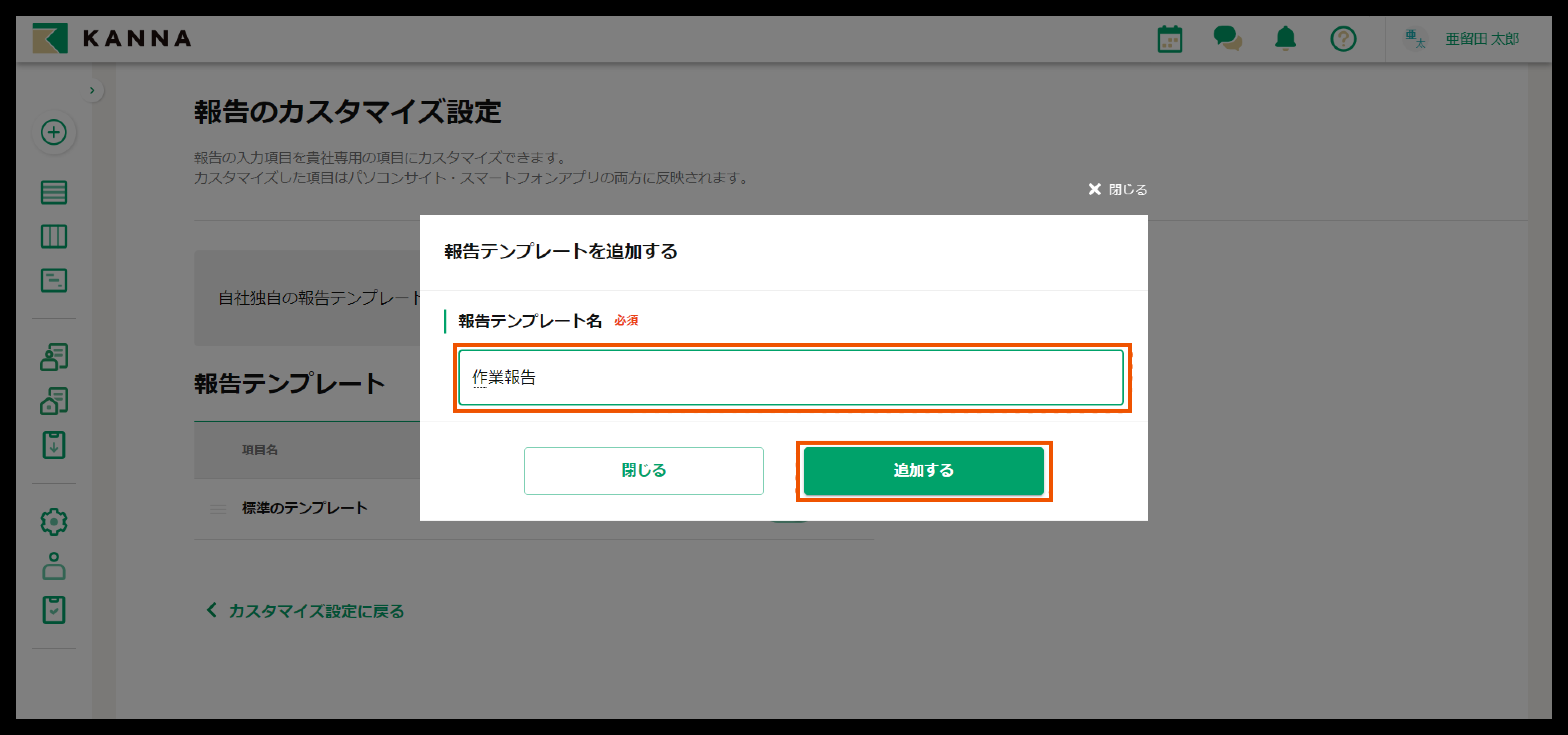 4. 報告テンプレート名を入れ「追加する」をクリック