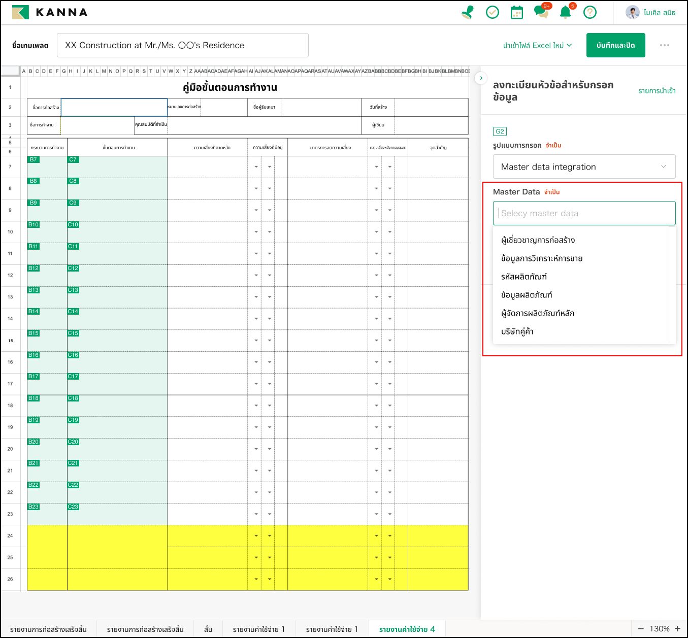 ระบบจะดึงค่าจาก master data ที่เกี่ยวข้องมาแสดงโดยอัตโนมัติ เพียงป้อน Primary key ลงในเซลล์ภายในรายงาน